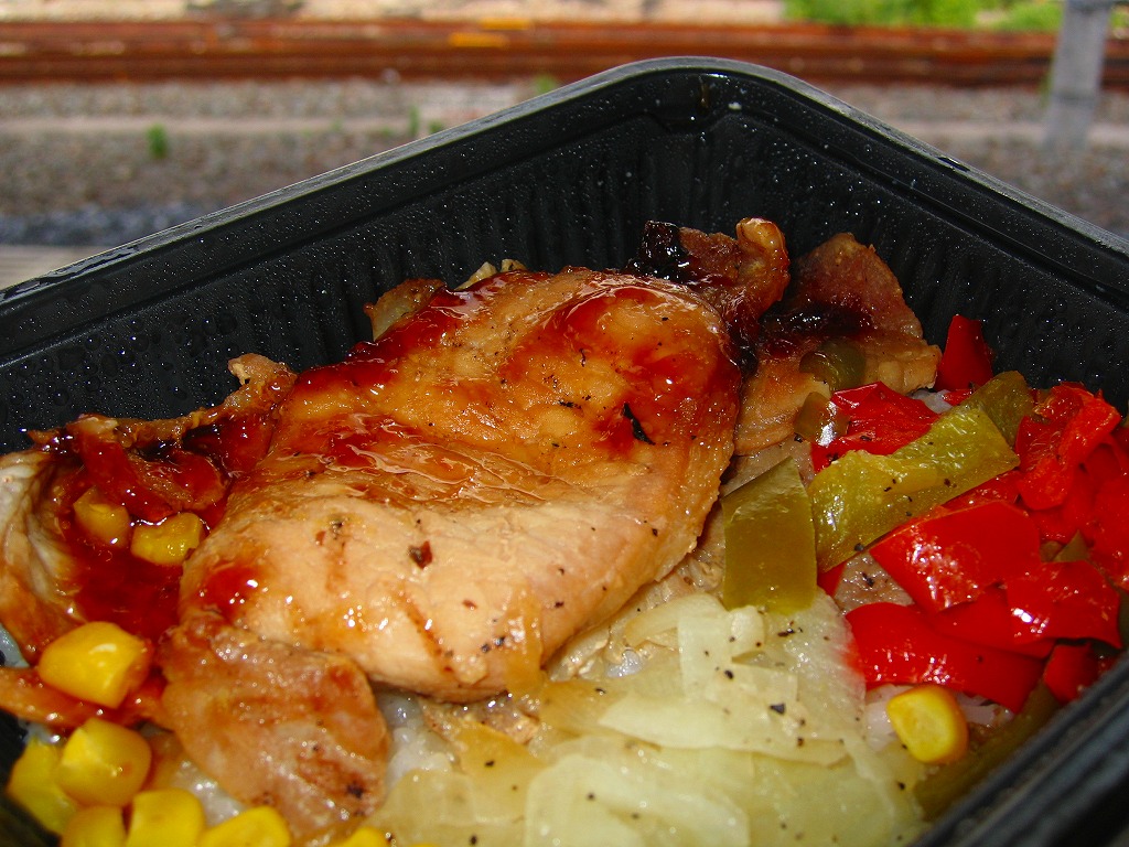 中身はおそらく「カレー風味チキン照り焼き弁当タンドリー風」のソースを甘酢ベースに変え、グリーンピースをブロッコリーとコーンに入れ替えただけ。味は並より上だと思うが、商品開発の安易さも感じる。こういう商品に東京駅や上野駅で伝統の駅弁の名前を含めてはいけないし、それと同じ売店で売ってはいけない。