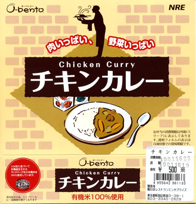 2006(平成18)年12月に発売された、O−bentoシリーズの新作。価格や容器の構造あるいはコンセプトを変えないまま、紙枠のデザインがまた新しくなった。中身は鶏肉も野菜も意外にたくさん入っている、まるごとチキンカレー。悪評の量が勝るO−bentoの一種であるから色眼鏡がかかるが、電子レンジで加熱する冷凍カレーライスと考えればかなりうまくできた商品で、冷凍御飯の食感上の欠点もこの味であれば大丈夫。駅弁売り場ではなく、スーパーの冷凍食品売り場に置くべき商品。2007年中にシリーズそのものがなくなった。