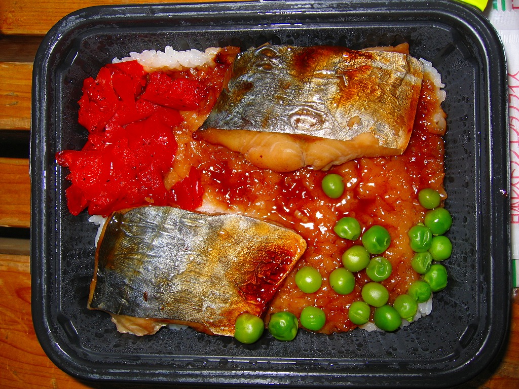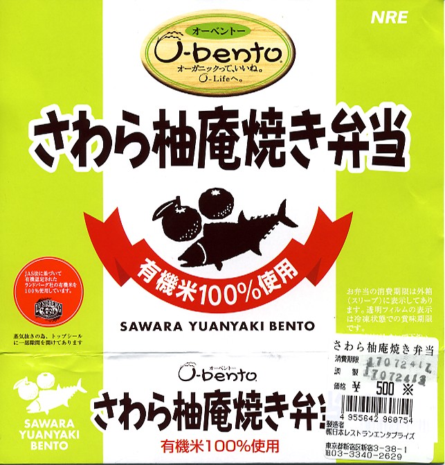 2005(平成17)年7月1日に再出発した、O−bentoシリーズの新作。白御飯の上にタレをかけ、2切れのサワラ柚庵焼にグリーンピースとパプリカを添える。御飯の風味は以前と同じだが、焼き魚の風味は駅弁に劣らない。安くもないが美味くもないジャンクフードな平板弁当という、かつてのイメージを払拭できていると思う。2007年中にシリーズそのものがなくなった。