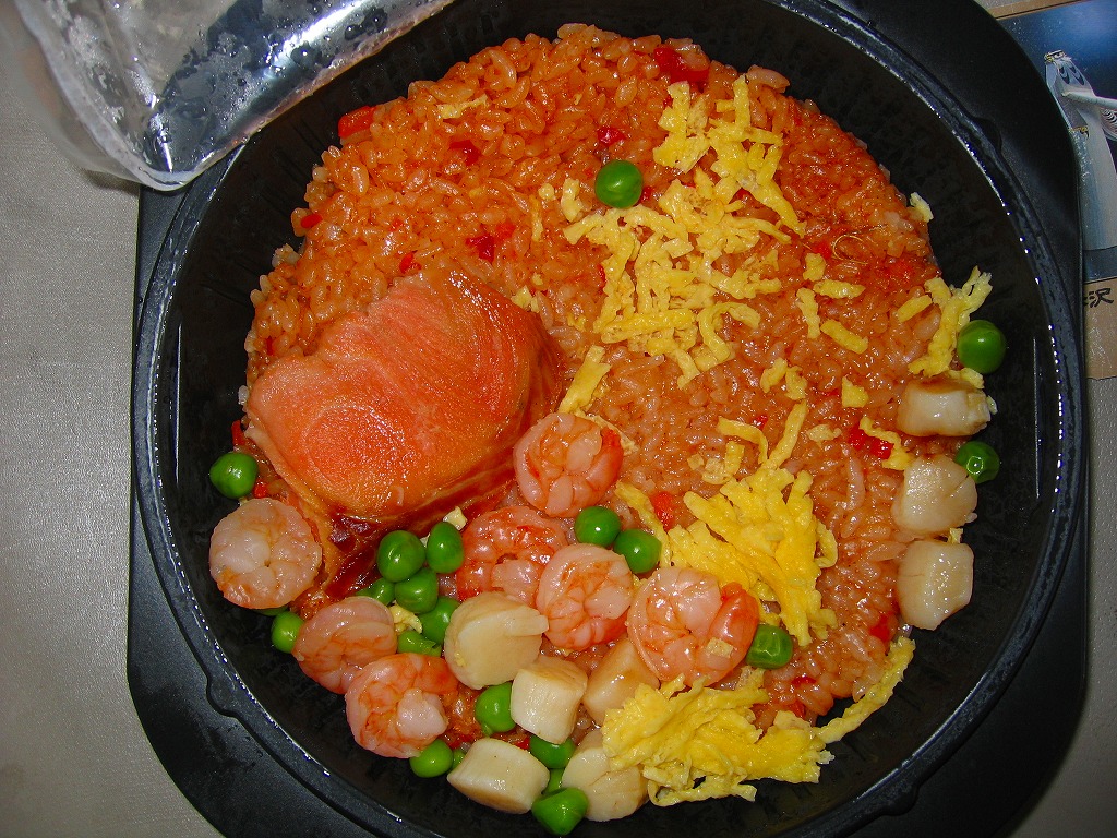 2004(平成16)年に発売された、O−bentoシリーズの新作。容器の構造は他の商品と変わらないが、パッケージのデザインが新しくなった。中身は上記の「O−bentoジャンバラヤ弁当」の具が、サーモンと小海老とミニ帆立貝柱に変わったもの。御飯が大阪風お好み焼きな形状に固まっていたものの、コンビニチャーハンを電子レンジで加熱よりは美味いと思う。高品質で健康的なジャンクフード。2005年7月のリニューアルで終売。