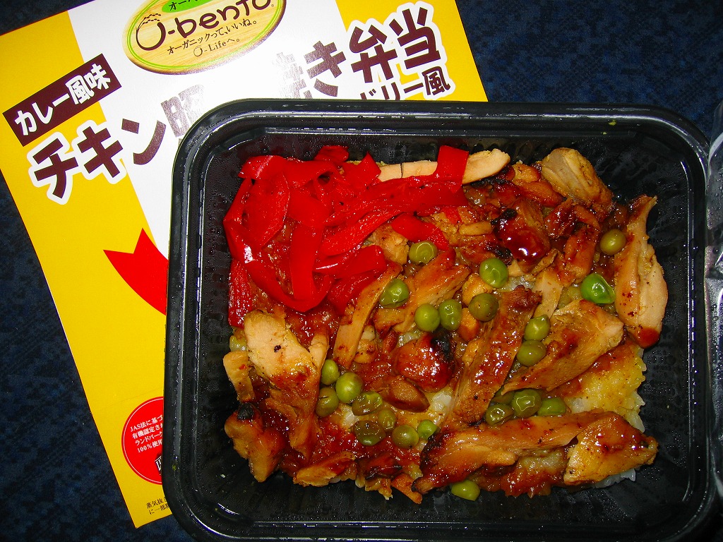 2005(平成17)年9月に発売された、O−bentoシリーズの新作。白御飯の上にカレー風味の鳥照焼スライスをけっこうたっぷり載せ、パプリカを添えてグリーンピースをまぶす。どっさり、ぐっちゃりの具は、学生の昼食としていけそうな味。また、文字数で日本一の駅弁かもしれない。2007年中にシリーズそのものがなくなった。