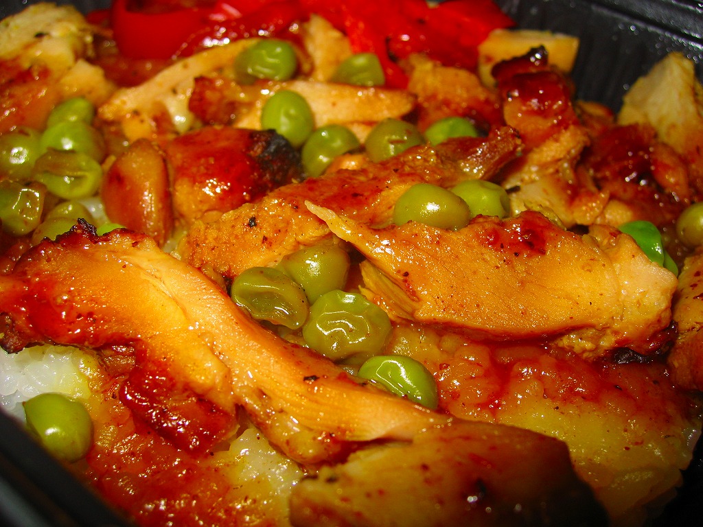 2006(平成18)年4月24日に発売された、O−bentoシリーズの新作。白御飯の上に鶏唐揚というか、焼き鳥のあんかけというか、衣も身もぷにょっとした肉団子が無数に散り、人参と2色のパプリカが載る。駅弁にもコンビニ弁当にもないタイプの不思議な風味なので、意外に固定ファンが付くかもしれない。
