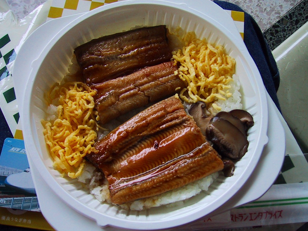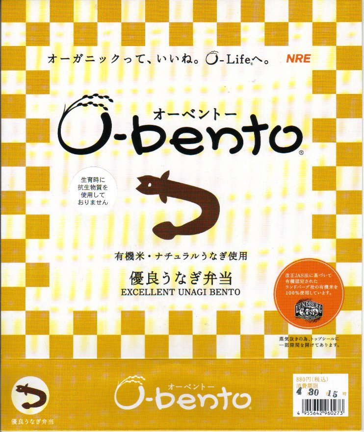 2002(平成14)年4月21日に発売された、O−bentoシリーズの新作。薄手のボール紙製パッケージに、フィルムで密封されたコンビニ弁当風のプラスティック製容器が入る。中身はアメリカ産あきたこまちの白御飯の上に錦糸卵を敷き、温泉で抗生物質や成長ホルモンを投与せず育てたというウナギの蒲焼きを2切れ載せる。
