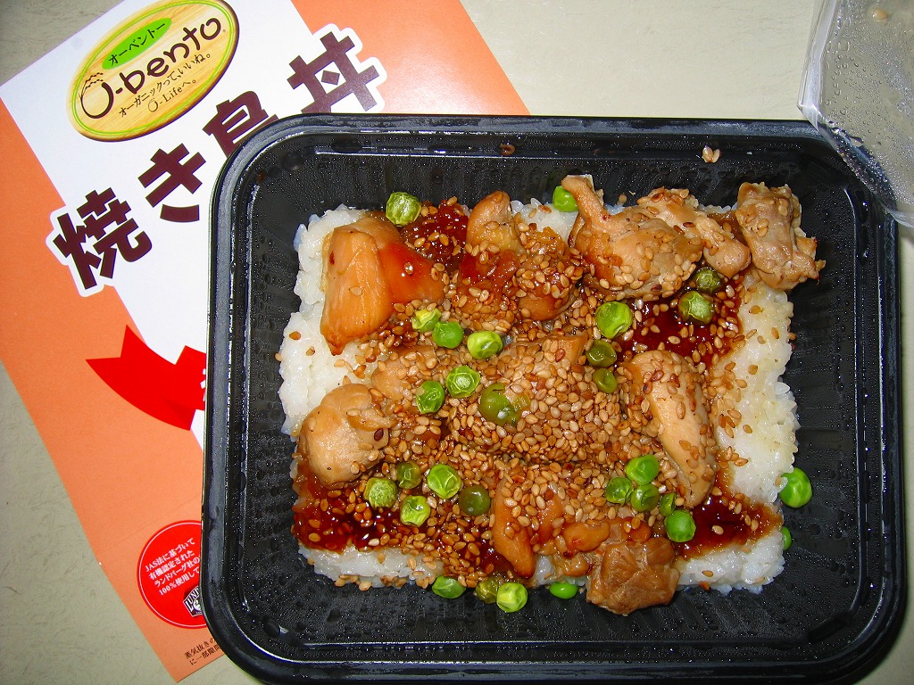 2005(平成17)年9月に発売された、O−bentoシリーズの新作。白御飯の上に串のない焼き鳥を散らして、タレとゴマとグリーンピースを振りかける。脂身の少ないあっさりした味は、高齢者向けでも大丈夫そう。同時投入の上記商品とは名前の長さも中身も対照的。2007年中にシリーズそのものがなくなった。