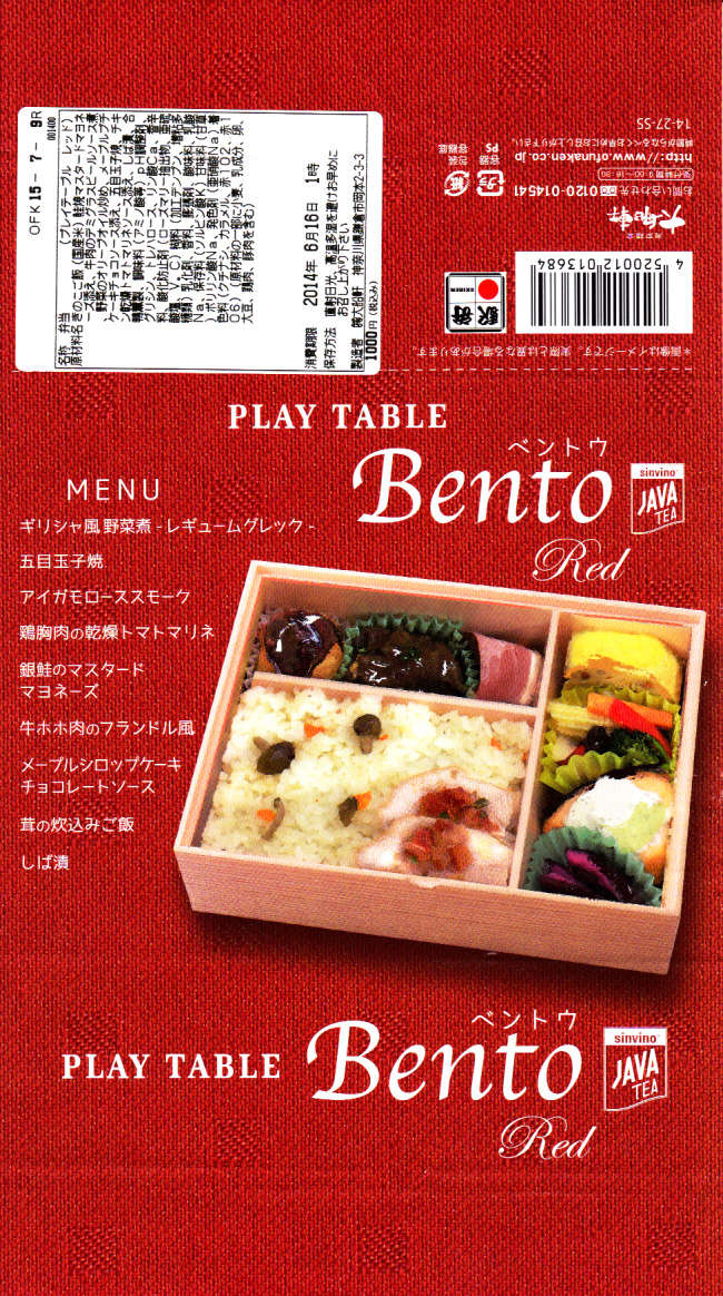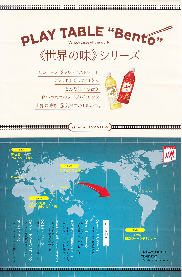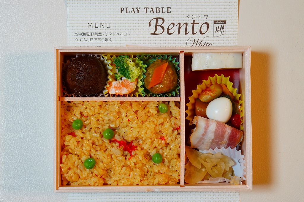大塚食品と日本レストランエンタプライズ(NRE)と大船軒とのコラボレーション駅弁「PLAY TABLE Bento」の第2弾、3種類目として、2015(平成27)年10月10日から東京・上野・新宿・大宮駅のNRE駅弁売店で12,000個を販売。今回も大塚食品の無糖紅茶「シンビーノ ジャワティストレート」とのセット販売で、中身もこのペットボトル売り飲料と合うものにしたという。