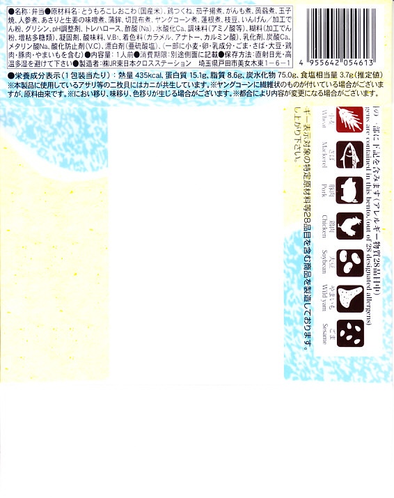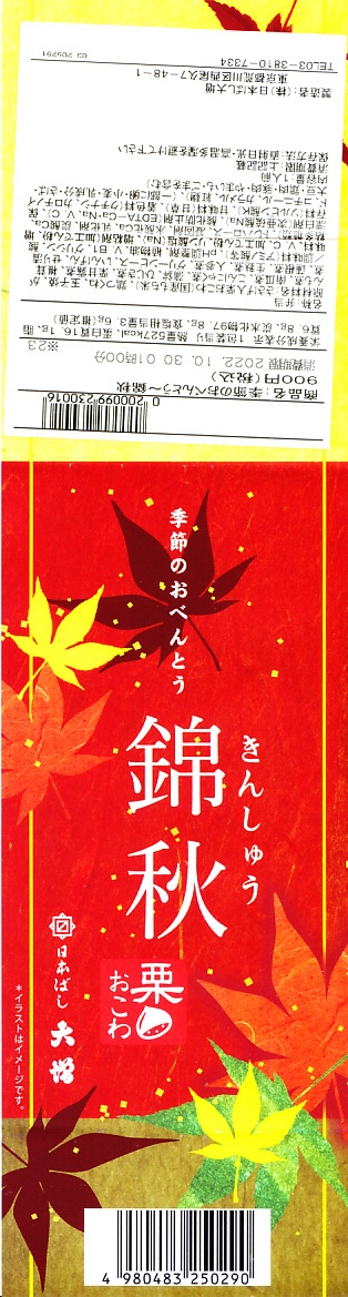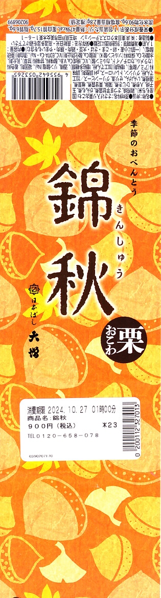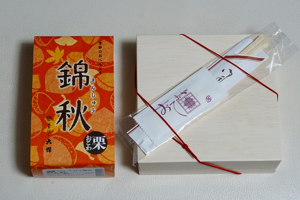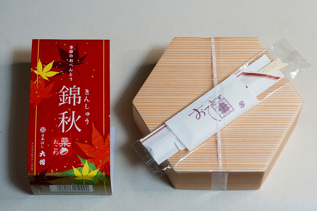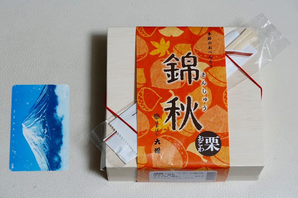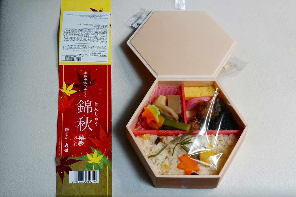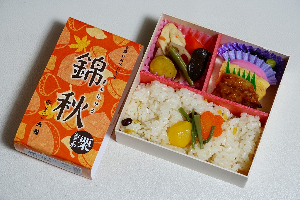 2021(令和3)年から東京駅などで売られる、9月から11月まで販売される秋の駅弁の、2024年版。10月のJR東日本の駅弁キャンペーン「駅弁味の陣2024」にエントリー。「日本ばし大増」ブランドの商品として、東京都内などのデパートの地下食品売り場でも買えると思う。