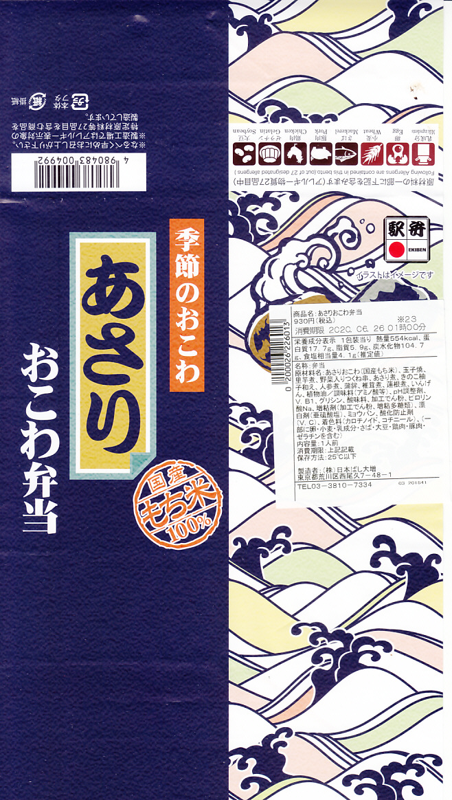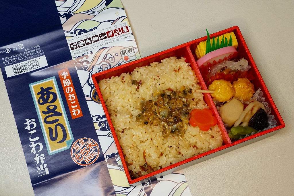 1990年代の発売。現在は東京、品川、新宿、上野、大宮の各駅で、毎年6月から8月まで販売される、季節のおこわ弁当の夏版。これは2020(令和2)年のもの。中身はあさりおこわ、玉子焼、野菜入りつくね串、カボチャやサトイモなどの煮物、かまぼこと玉子焼、きのこ柚子和え。内容は毎年ほぼ同じでも、掛紙の絵柄は毎年変わっている。今の東京の駅弁の中では、うまいわりに高くない、コスパが高いものだと思う。価格は2010年から880円、2014年から900円、2019年から930円。2021年シーズンまでの販売か。