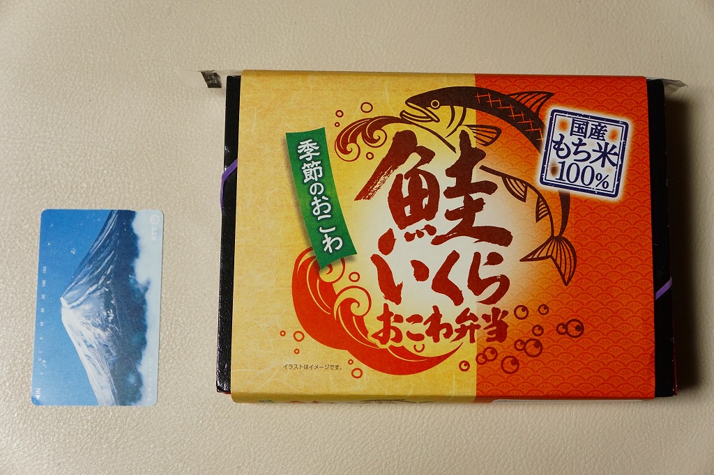 1990年代の発売。現在は東京、品川、新宿、上野、大宮の各駅で、毎年12月から2月まで販売される、季節のおこわ弁当の冬版。2012年の冬に発売のものから、名前と中身が「帆立おこわ弁当」から「鮭いくらおこわ弁当」に変わった。鮭フレークを混ぜたおこわにイクラをトッピングし、甘辛ソースの鶏唐揚、玉子焼、サトイモやタケノコなどの煮物、パプリカを添える。鮭を切り身の焼き物でなく、おこわに細かく混ぜたことで、風味を増感した印象。価格は2010年から880円、2014年から900円、2019年から930円、2020年から950円。2020〜2021年シーズンまでの販売か。