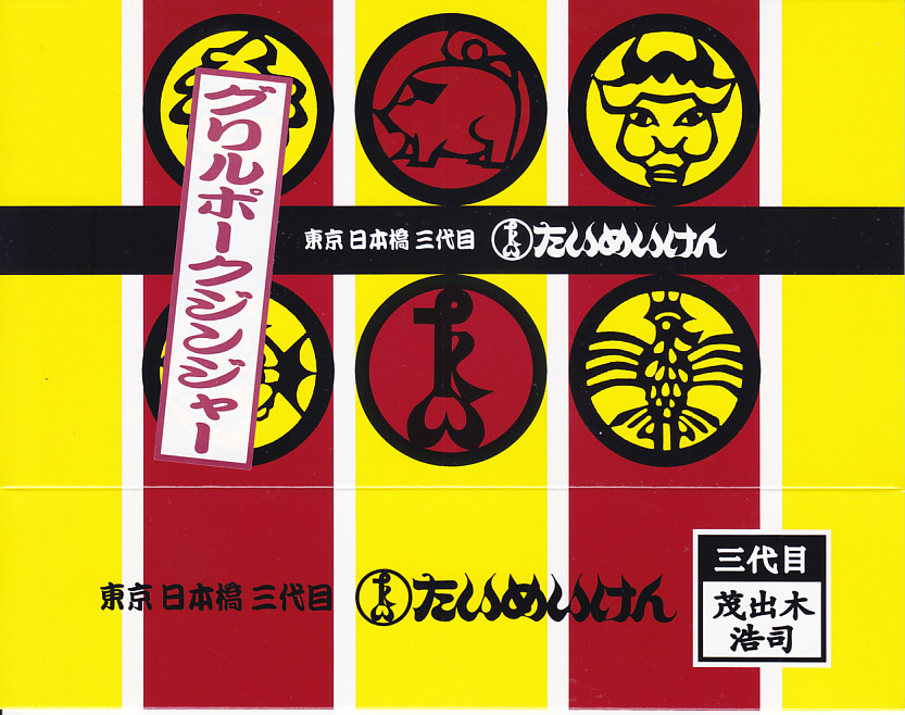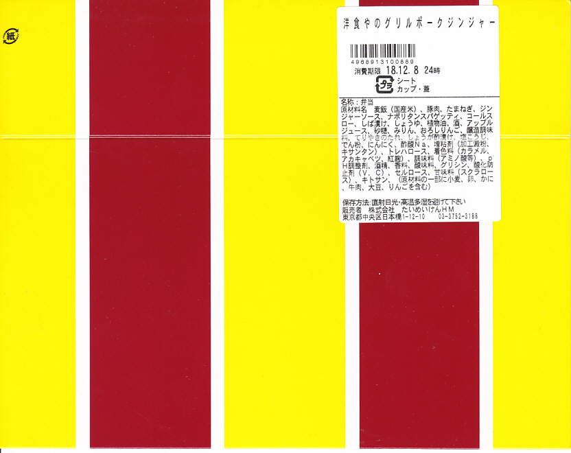 東京の駅や空港やデパ地下でおなじみの、「三代目たいめいけん」ブランドのお弁当のうちひとつで、2018(平成30)年の春までに発売か。麦飯を豚ステーキの生姜ソースで覆い、スパゲティ、コールスロー、柴漬け、ジンジャーソースを添えていた。2018年末頃までの販売か。