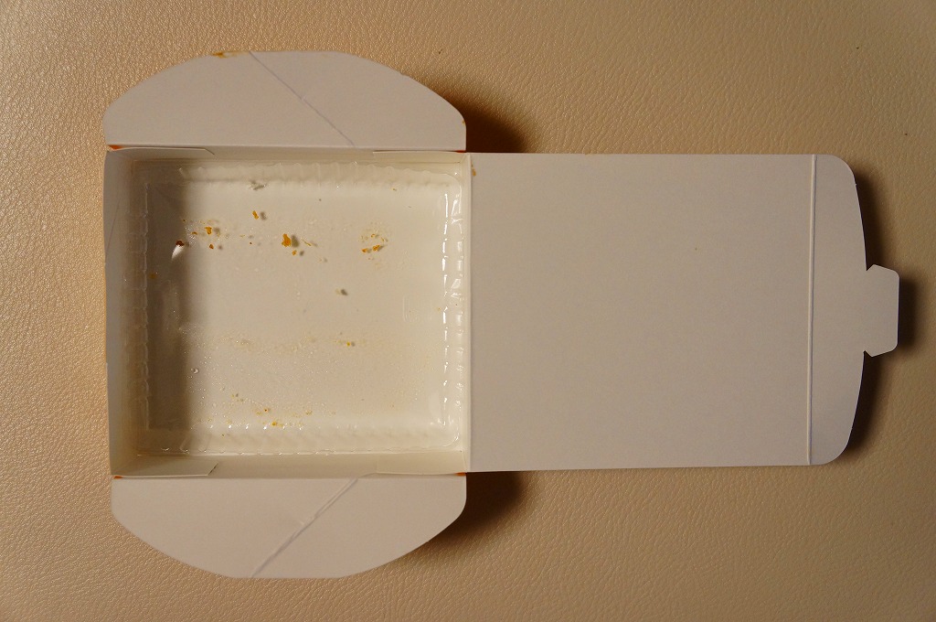 東京駅や羽田空港、その他都内各地で幅を利かせるカツサンドの、小さいパッケージのヒレカツタイプ。透明なトレーに収めた袋詰めのヒレカツサンドが、2切れ×2分割で紙箱に収まる。この商品は2020年頃から、駅ではその姿を見ていない。