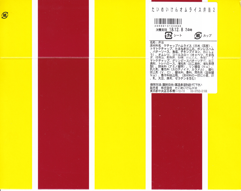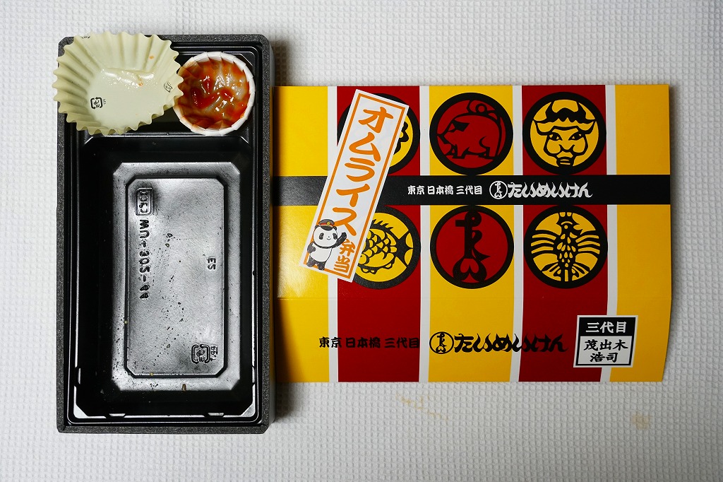 東京の駅や空港やデパ地下でおなじみの、「三代目たいめいけん」ブランドのお弁当のうちひとつで、2009(平成21)年の秋までに発売か。ケチャップハムライスにトロトロ風オムレツを載せて、コールスローとトマトケチャップを添えていた。2019年までの販売か。