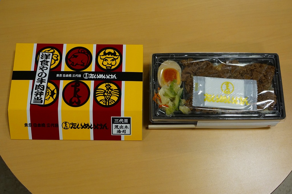 東京駅構内の商業施設「京葉ストリート」のリニューアルオープンの記念商品として、2016(平成28)年3月3日に同施設内の駅弁売店「膳まい」で発売。東京の駅弁や空弁でおなじみの意匠のパッケージに収まる中身は、白御飯を牛肉煮で覆い、煮玉子とコールスローを添えるもの。国産牛バラ肉を使用し、フォン・ド・ヴォーを隠し味に使ったという牛肉は、筋だらけに感じるのに柔らかくて切れやすく、脂身が多く見えるのに脂の味がなく、ボリューム感のある独特な食感。このブランドのデパ地下の売店にも置かれているらしい。2018年までの販売か。