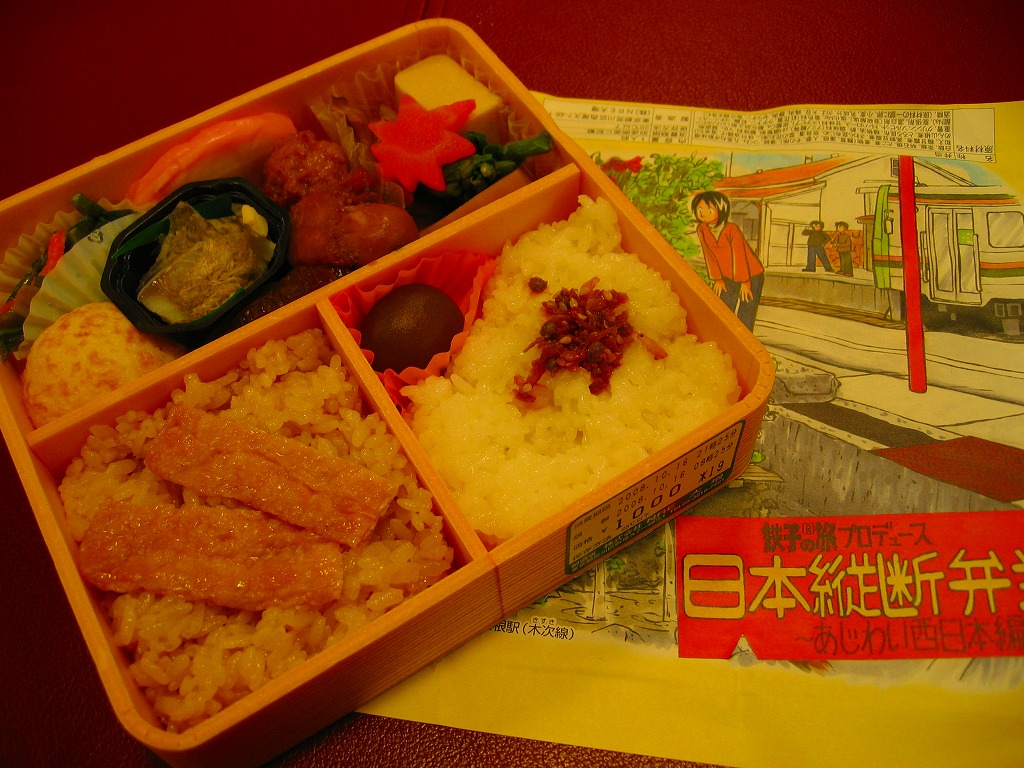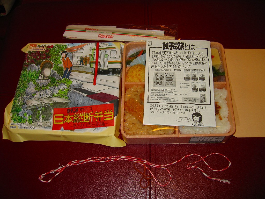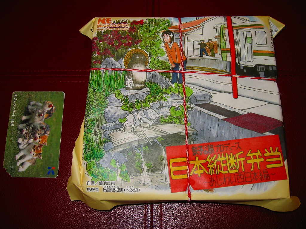 漫画「鉄子の旅」の著者である菊池直恵がプロデュースした駅弁の第4弾で、2008(平成20)年10月12日に東海編から切り替え。今回は西日本、詳しく書けばJR西日本エリアを題材とした。ふたと枠に経木を使う正方形の容器に、島根県・木次(きすき)線出雲坂根駅のイラストを漫画家自身が描いた掛紙をかける。
