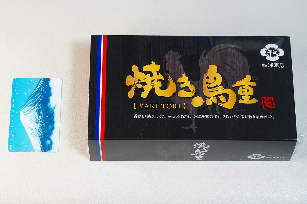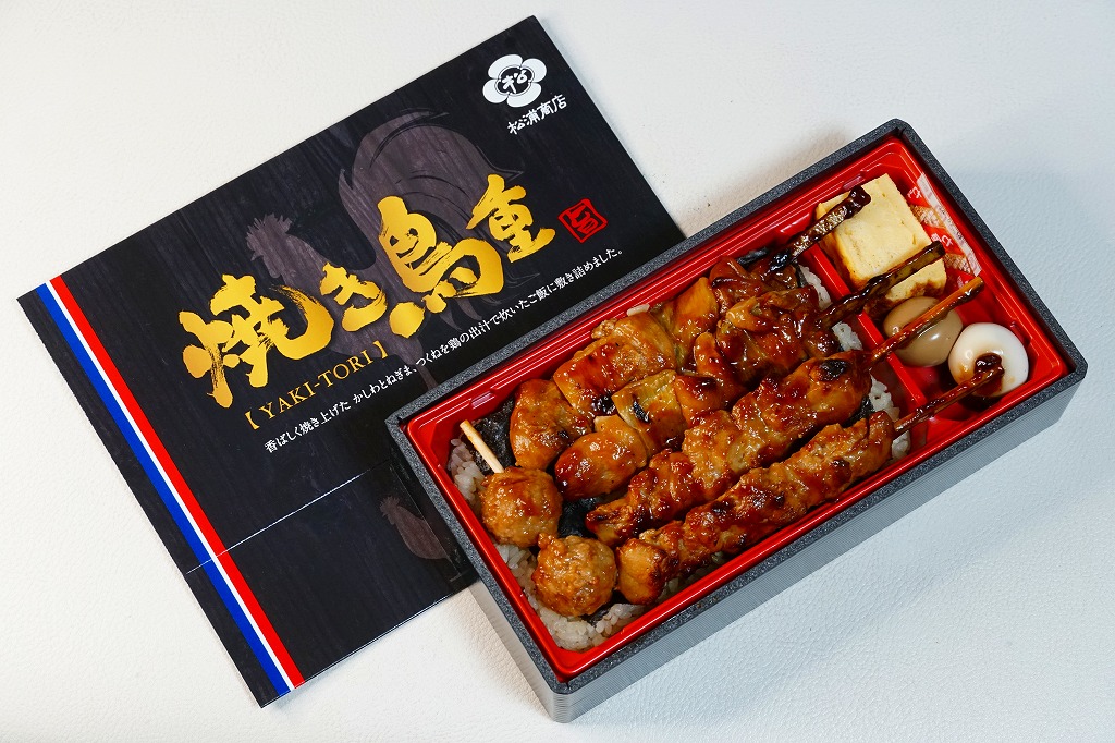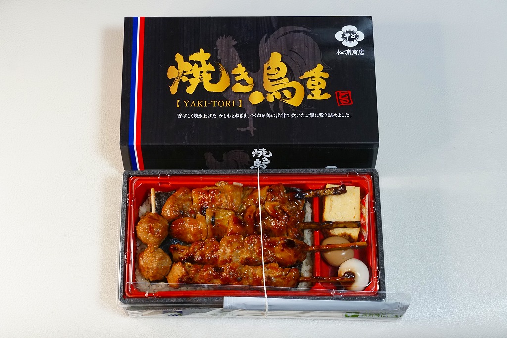 2023(令和5)年の7月までに東京駅で発売か。調製元は愛知県名古屋駅の駅弁屋であるが、名古屋駅の駅弁としては紹介されず、プロ野球団の中日ドラゴンズのナゴヤドームではヤクルト戦(東京が本拠地)で「球弁(たまべん)」のひとつとして3月から販売されたらしく、名古屋でなく東京の駅弁と考えられる。商品名を記した真っ黒なスリーブに収めた、長方形のプラ容器に、鶏の出汁で炊いたという御飯を詰め、海苔で覆い、ねぎまとももの串ありタレ焼き鳥計4本と鶏つくね串でも覆い、玉子焼とうずら卵2個を添える。串を抜かず、他のおかずを付けず、飯と鶏のみでできた、これは本物の焼き鳥弁当。肉の締まりも良かった