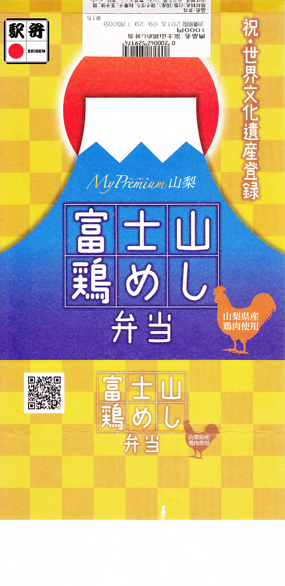 2013(平成25)年9月から11月までの公益社団法人やまなし観光推進機構とJR東日本八王子支社との観光キャンペーン「My Premium 山梨 空に、大地に。」の一環で、同年9月1日から11月30日まで、NREの東京駅、上野駅、新宿駅、品川駅、大宮駅、八王子駅、甲府駅の駅弁売店で販売された駅弁。富士山を模式化した姿の掛紙を見ると、ユネスコによる2013年6月の世界文化遺産への登録も記念していることが分かる。