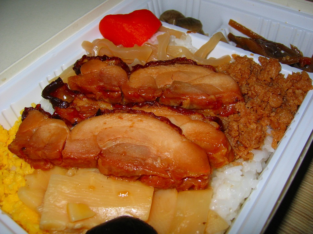 真っ黒な楕円形の容器に茶飯を敷き詰め、シャモ煮と玉子そぼろを敷き詰め、赤カブ漬などを添えるもの。シャモ肉は鶏肉より高級だという先入観をしても、「東京しゃも」の特徴なのか、醤油味がきついからか、水気が多く柔らかい中身に肉の旨味がなく、普通の鶏飯駅弁に対するアドバンテージが感じられなかった。