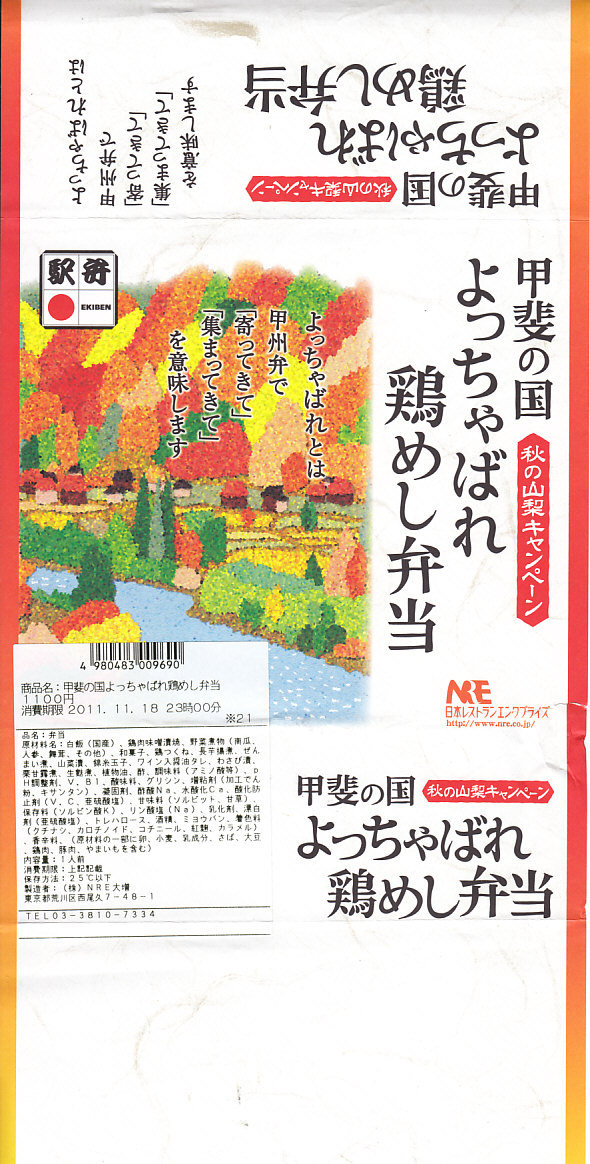 JR東日本八王子支社の観光キャンペーン「観たい!食べたい!歩きたい! 魅力満載!秋の山梨キャンペーン」に伴い、その開催期間中である2011(平成23)年9月1日から12月4日までの予定で、東京、新宿、八王子、甲府の各駅と中央本線特急列車内で販売した期間限定商品。