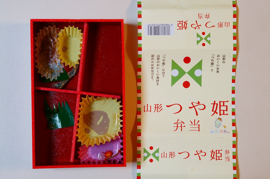 2014(平成26)年6月14日から個数限定で販売。山形のお米の名前を名乗るが、調製は東京のNRE。4つに区切った容器の2区画に真っ白な御飯を詰め、梅と味噌を添えて、もう1区画に芋煮と果物、残る1区画に焼鮭、玉子焼、みょうがなど。とても出来の良い山形キャンペーン弁当。ただ、肝心の米の味がなぜかいつものNREであり、山形駅弁「やまもり弁当」で感激した味を感じられなかった。3か月間ほどの販売か。