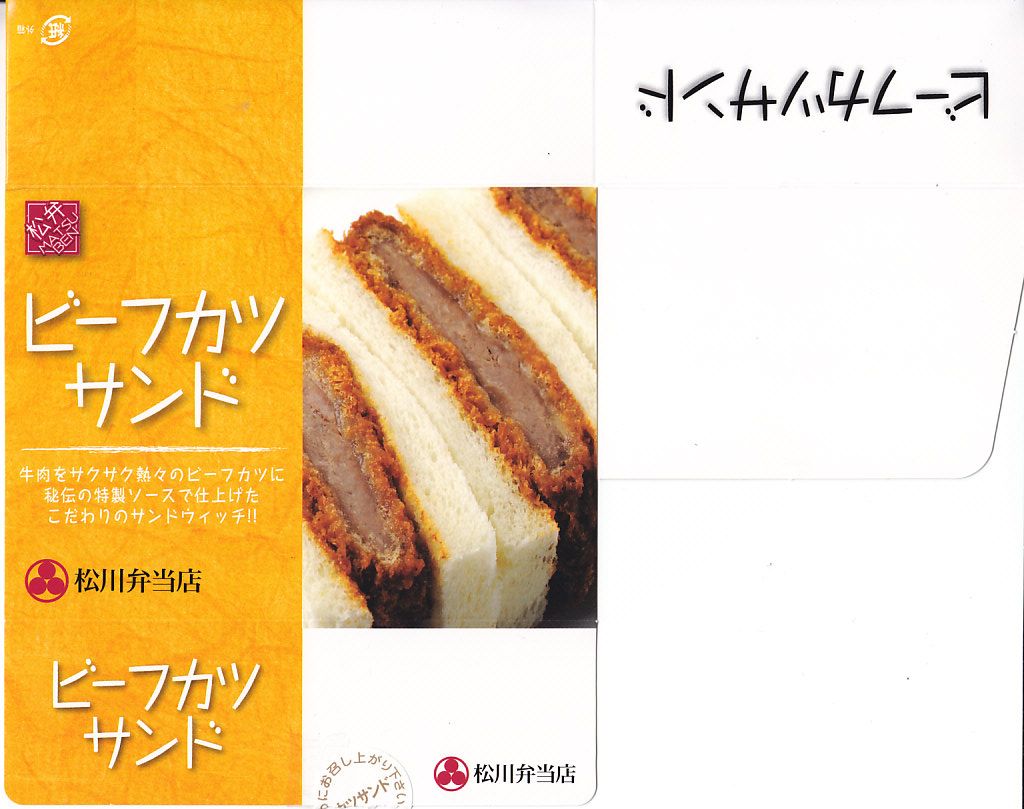 2011(平成23)年の秋頃に東京駅で発売か。商品名どおりのビーフカツサンドが3切れ、ボール紙の箱に収まり、さらに商品名と中身の写真を印刷したボール紙の化粧箱に収まる。値段は張るも、感想はとくになし。調製元は米沢駅の駅弁屋だが、米沢との関係は皆無だろう。現存しないと思われる。