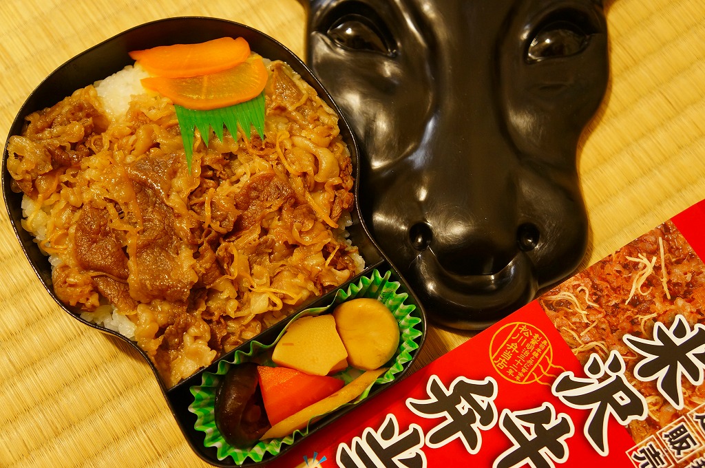 これは、駅でも駅弁大会でも話題を呼べなかった米沢駅弁「牛角煮弁当」が、名前と値段と肉と販売箇所を変えて再出発したものである。中身がこれと同時に発売した松阪駅の人気駅弁「モー太郎弁当」と似てしまったことにより、既視感がとってもアリアリ。