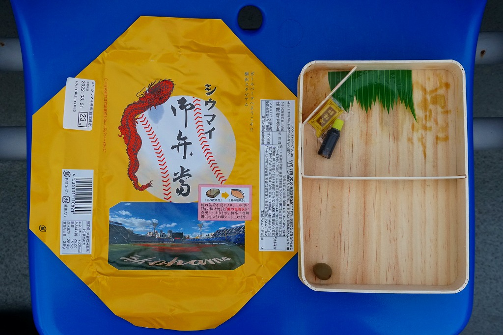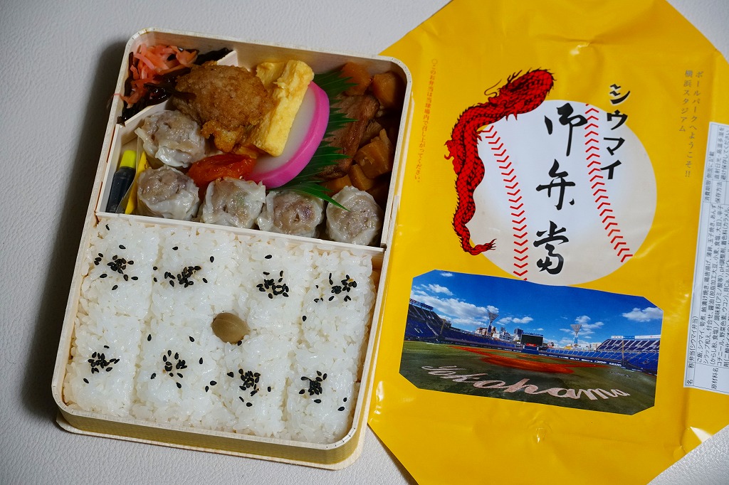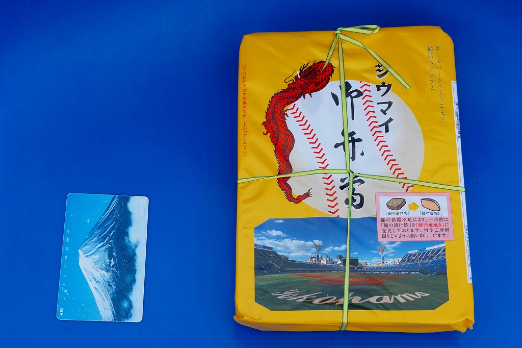 横浜スタジアムでプロ野球の試合が開催される際に、球場内でのみ販売されるお弁当。横浜駅弁のシウマイ弁当との違いは、掛紙のデザインが異なることと、価格が100円高いこと。容器と中身は、まったく同じ。ということで価格は駅売りのシウマイ弁当と連動し、2017年時点で930円、2019年時点で960円。