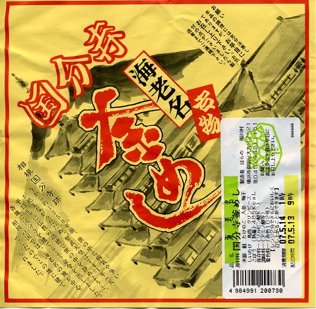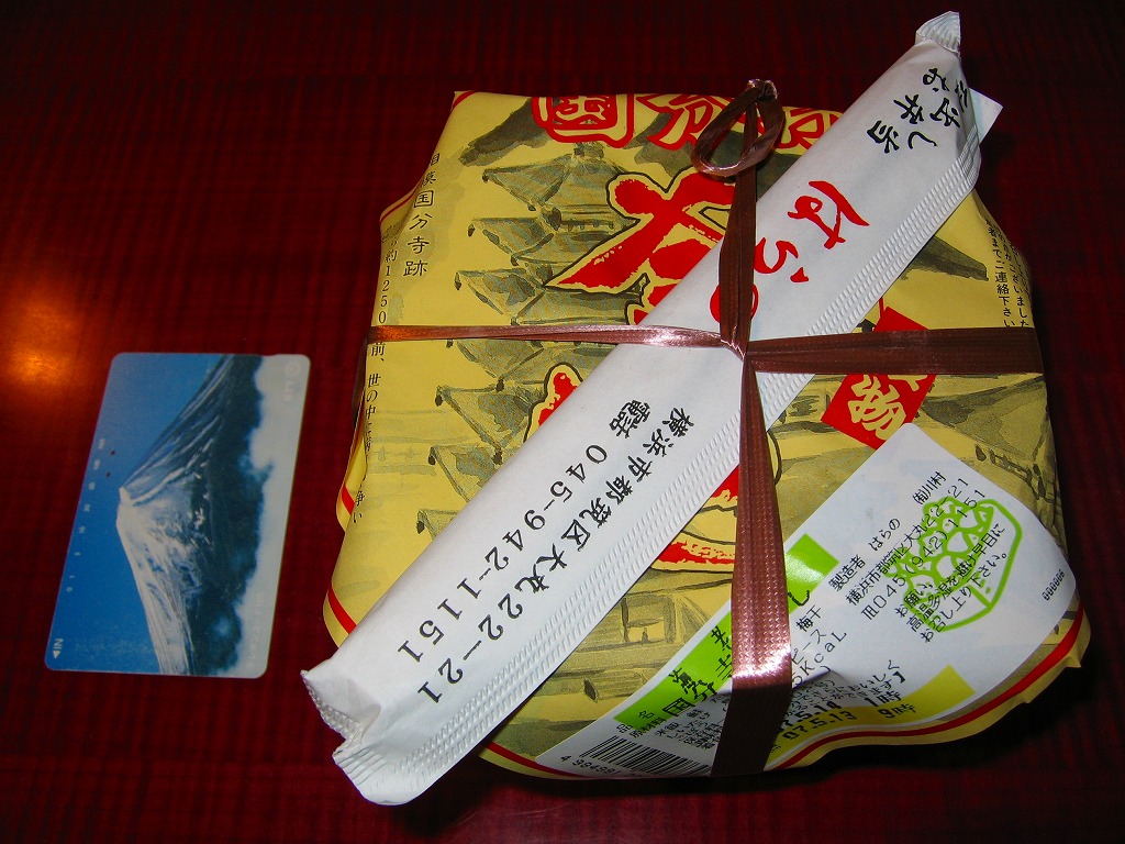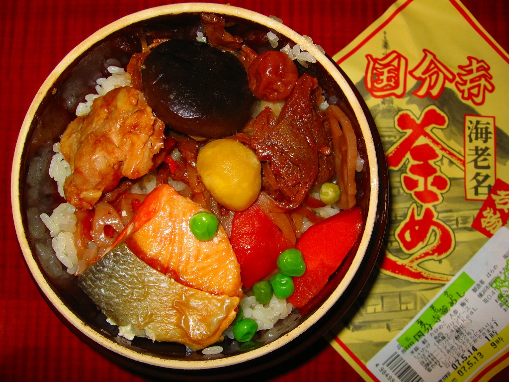 収穫報告がほとんどないが、2004(平成16)年までに発売していたか。駅弁でおなじみの、ふたまで陶製の釜飯容器に、駅弁と同様の掛紙をかけて、割りばしを置いて十字にしばる。その黄色い掛紙には弁当名と相模国分寺跡の墨絵及び解説文が描かれるが、その一部が食品表示ラベルで隠れてしまった。