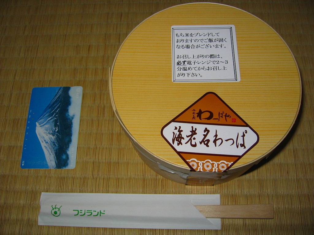 バブル崩壊後のマスメディア等による道路公団叩きの一環で、1997年に高速道路でのサービスエリア(SA)やパーキングエリア(PA)の運営が道路施設協会(当時)の独占でなくされてから、店舗や商品の多様化が一気に進んだ。一日12万台の車両が通過する東名高速道路の厚木・横浜間に面する海老名サービスエリアは、従前から全国有数の規模と来客があったと思うが、今や休憩所ではなく駐車場を備えた商業施設。上り線側には売店にフジテレビ資本が進出したのか、ロゴマークやテレビグッズ屋が賑やかだった。この弁当の箸袋にもロゴマークが付いていた。