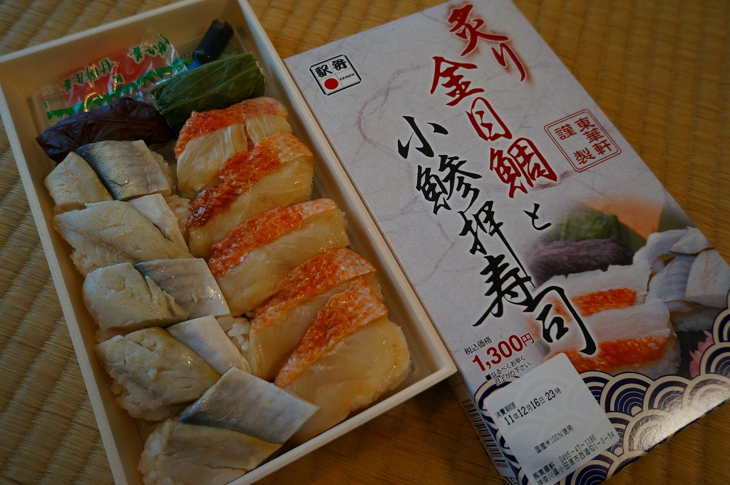 【終売】炙り金目鯛と小鯵押寿司(1,300円)Aburi Kinmedai to Koaji Oshizushi (end of sales)