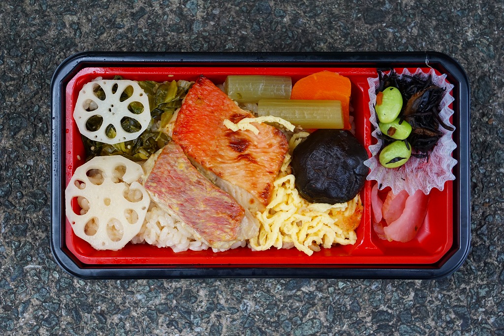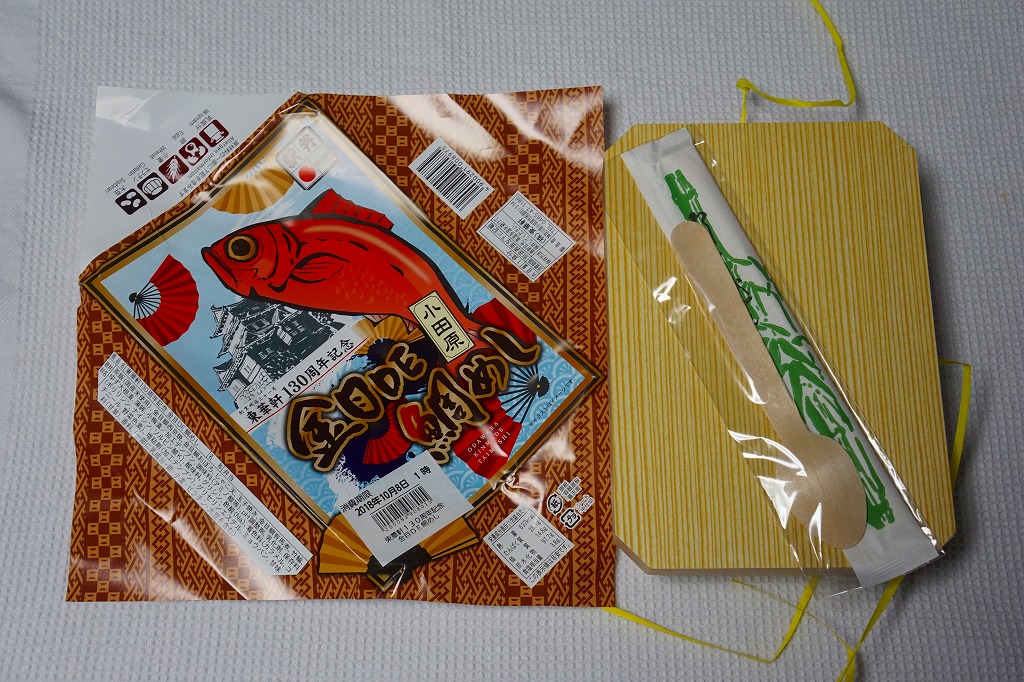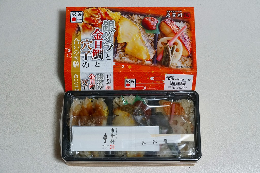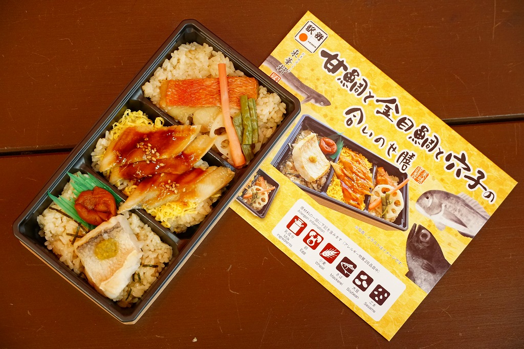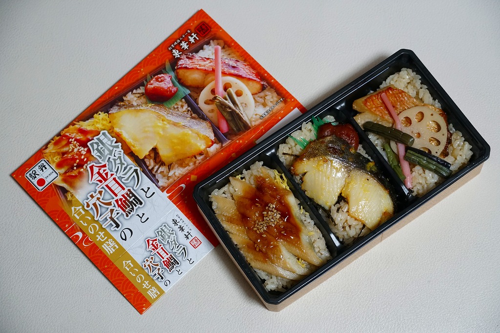 飯も魚も、コンビニでの冷蔵販売で冷たいのに、ふんわりとした味わい。そんな味に影響はないものの、駅弁らしいボール紙枠に収める安っぽいプラ製容器はともかく、メインの金目鯛は公式サイト写真の半分程度の大きさにしか見えず、散らす具は乱雑で、見栄えの工夫がもっと欲しいところ。価格は2016年の購入時で950円、2022年6月16日から1,050円、2023年6月から1,100円、2024年5月11日から1,230円、2025年2月から1,280円、6月から1,380円。