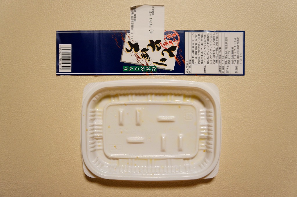 かなりの甘味で、確かに売店の販売員から「おかずだけしかないよ」と売り惜しみされたとおり、これだけでは食べられたものではないかもしれない。駅弁売店に他の惣菜があるわけでもない。しかしこうやって何十年も売られていれば、それだけ売れる、買い求める客がいる、人気があるのだろう。ちょっと不思議な存在。