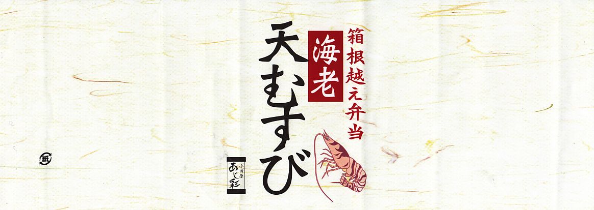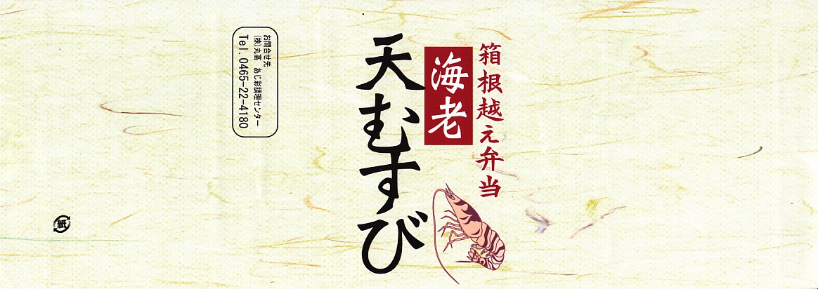 上記の商品「海老天むすび」の、2011(平成23)年時点での姿で、箱根湯本駅で購入。掛紙での調製元の表記と価格を除き、上記の2020年のものと何も変わらない。