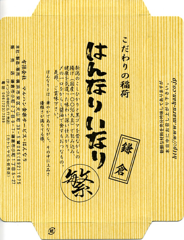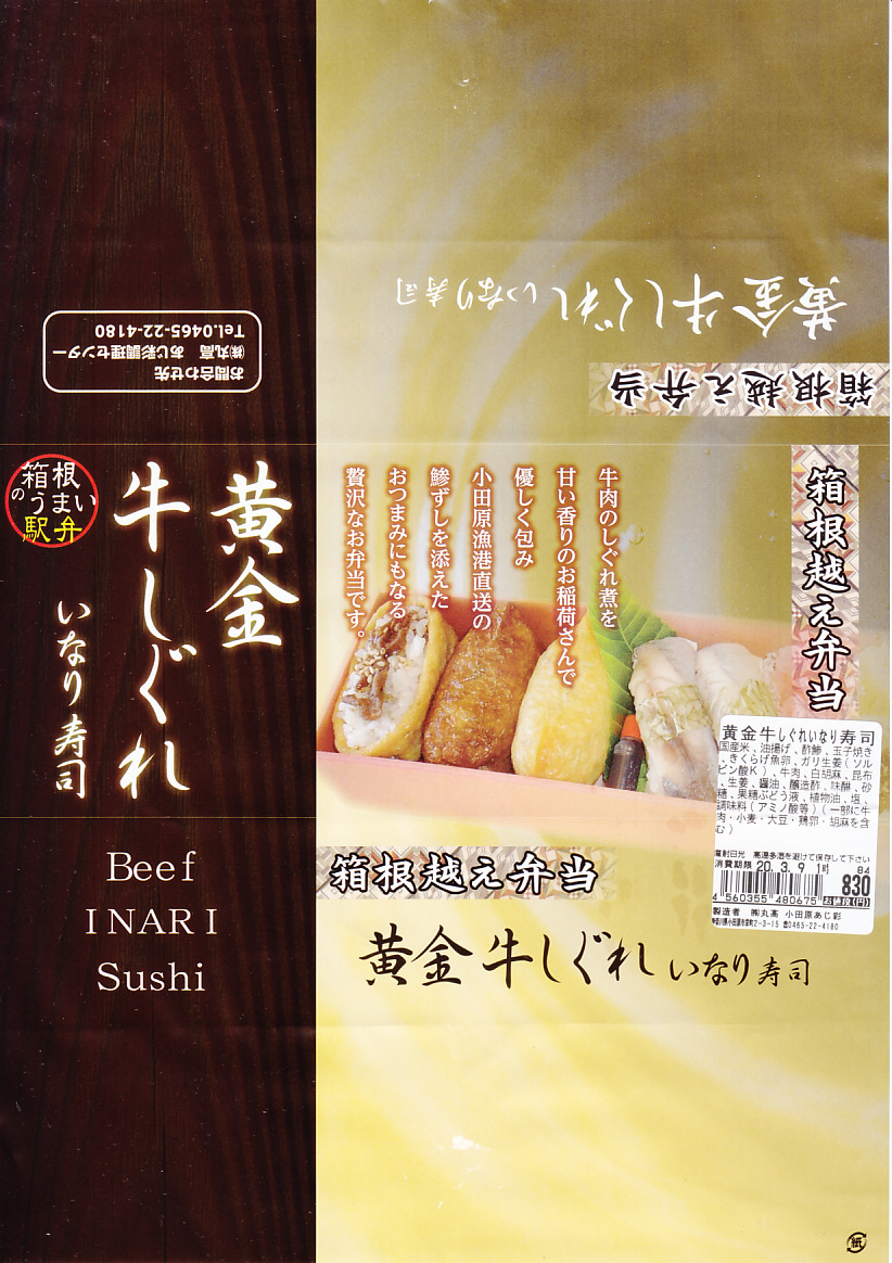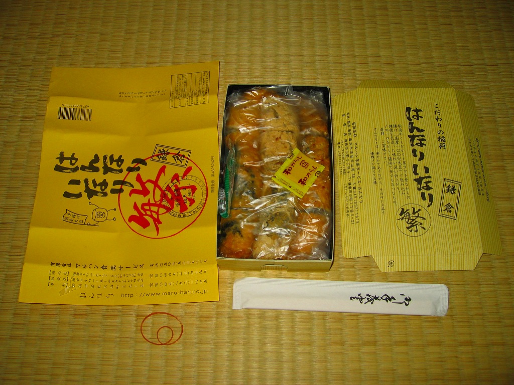 調製元は鎌倉に近い横浜市南部の住宅街にある寿司屋で、鎌倉の駅前と市街に売店を出している模様。鎌倉は街弁としてのおいなりさんが地元限定で親しまれている。しかしこれがなぜ鎌倉ではなく、小田原と熱海の駅弁売店で売られるのだろうか。
