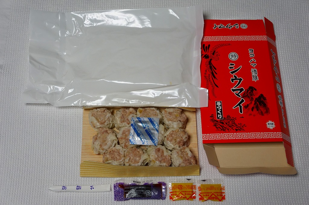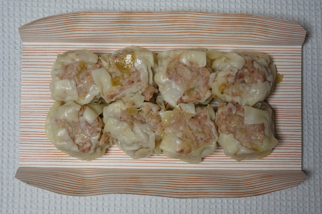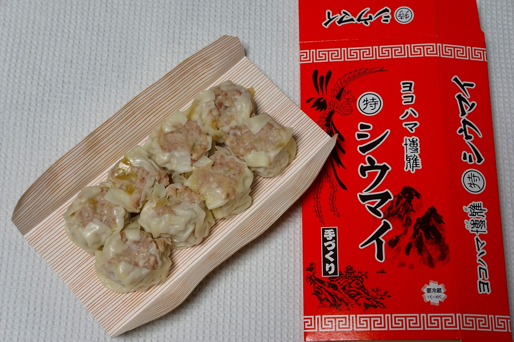 ボール紙のトレーに6個の、横浜駅の崎陽軒にたとえれば特製サイズの焼売が6個、ボール紙のトレーごと真空パックされて収まっていた。豚とその脂の臭みが強く、どうも常温ではなく加熱しないとうまくない商品のよう。