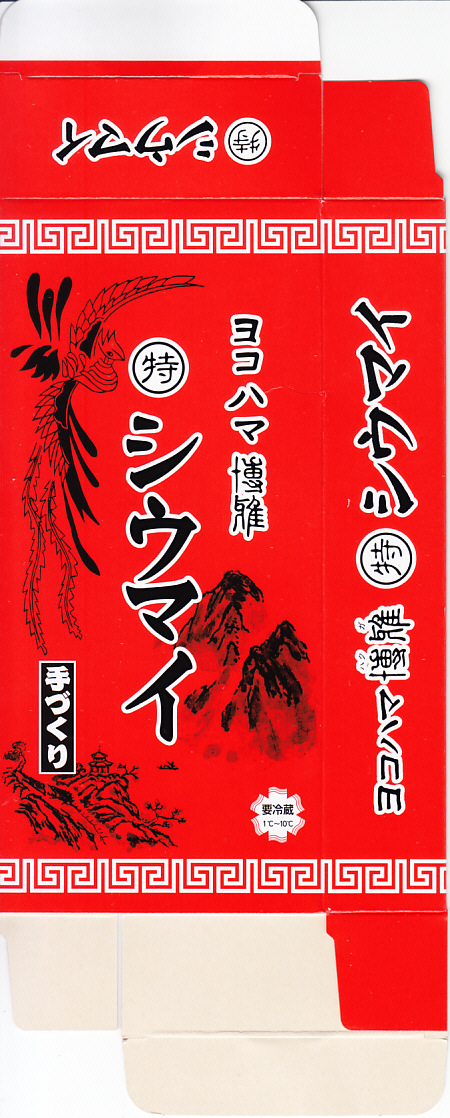 上記の「ヨコハマ博雅(特)シウマイ」の、8個入りバージョン。3年前と同じ売店で、小田原名物として売られていた。黒い箱が赤くなり、ふたを開く構造がただの箱になり、焼売が6個から8個に増えて、価格は25%増し。臭みのあるふわふわした肉焼売を、竹皮柄の紙トレーごと真空パックする、要冷蔵の土産物である点は変わらない。名前がまた変わった調製元の所在地は、JR藤沢駅前のデパート「さいか屋」と同じ。