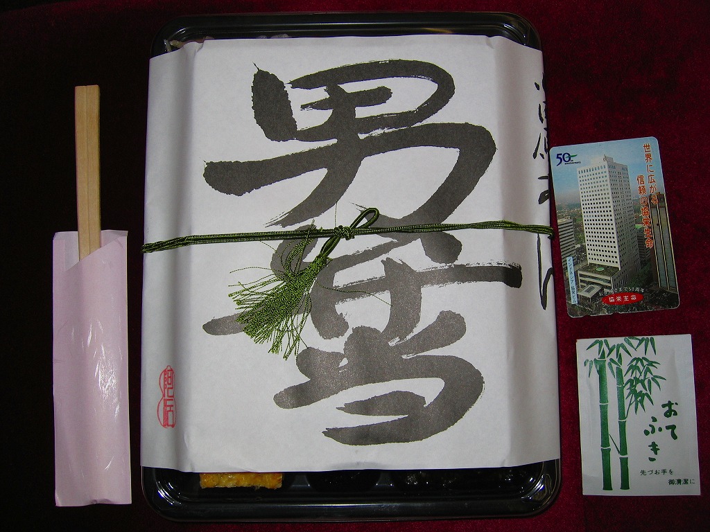 弁当名の由来を中身に求めると、確かに御飯は山盛りだったが全体の分量は決して多くはなく、明らかに名前負け。あるいは中身の配置が雑然としているから男なのか、小田原の男はこの分量で音を上げてしまうのか。価格を上げてでも掛紙の力強さが生きる中身になれば、東京のメディアにアピールできると思った。現存しないものと思われる。