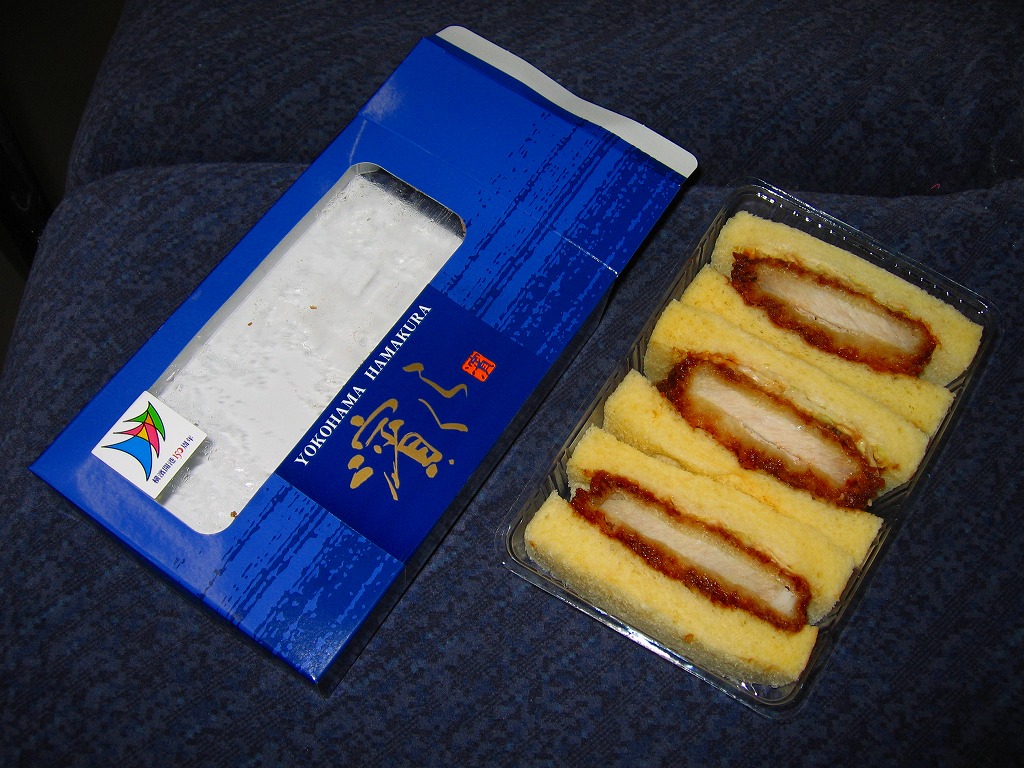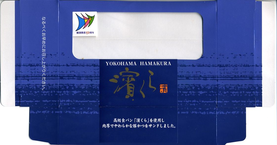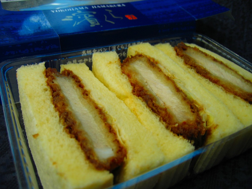 「濱くら」とは、製パン最大手の山崎製パンが神奈川県内限定で販売する、1斤が350円もする高級食パン。「厳選された小麦粉とバター・卵を贅沢に使用し、ふんわりソフトに焼き上げ」たそうな。カツサンドにすると具の味に負けてしまうが、そう言われると確かに、潰れたり乾燥していることも少なくないカツサンドのパンが、これはふんわりしっかりしていたような。横浜開港150周年の記念商品ということで、そのロゴマークが貼られている。横浜の駅構内コンビニでは見たことがない。このシリーズは2009年頃までの販売である模様。