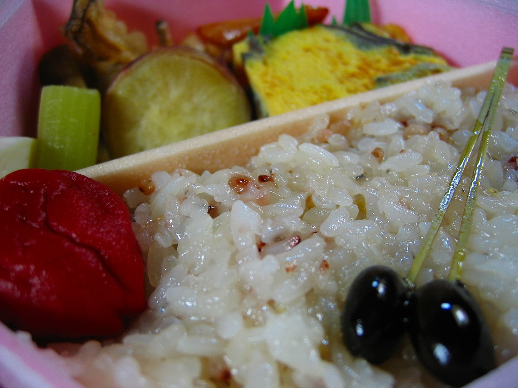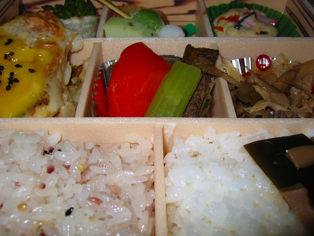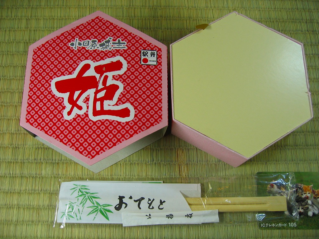 2005(平成17)年3月に「小田原城主 殿」と同時に発売か。小さな小さなピンク色の正六角形の容器を、同じ形で同じ色のボール紙にはめる。中身は黒米・赤米・鳩麦・黒胡麻・餅きび・大麦の六穀米に、薩摩芋や玉子焼や鶏きじ焼や舞茸天や豆腐蒲鉾など。分量はとても少ないが、中身は多種多様で価格も控えめなので、小田原城を観光名所と見なす高齢者の方々にぴったりの駅弁。「殿」とともに一日30個限定の駅弁らしいが、売店でその両方を一度に見る機会は少ない感じ。2006年に終売か。