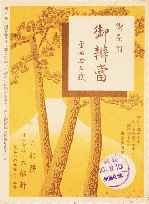 1941(昭和16)年8月10日6時の調製と思われる、昔の大船駅弁の掛紙。