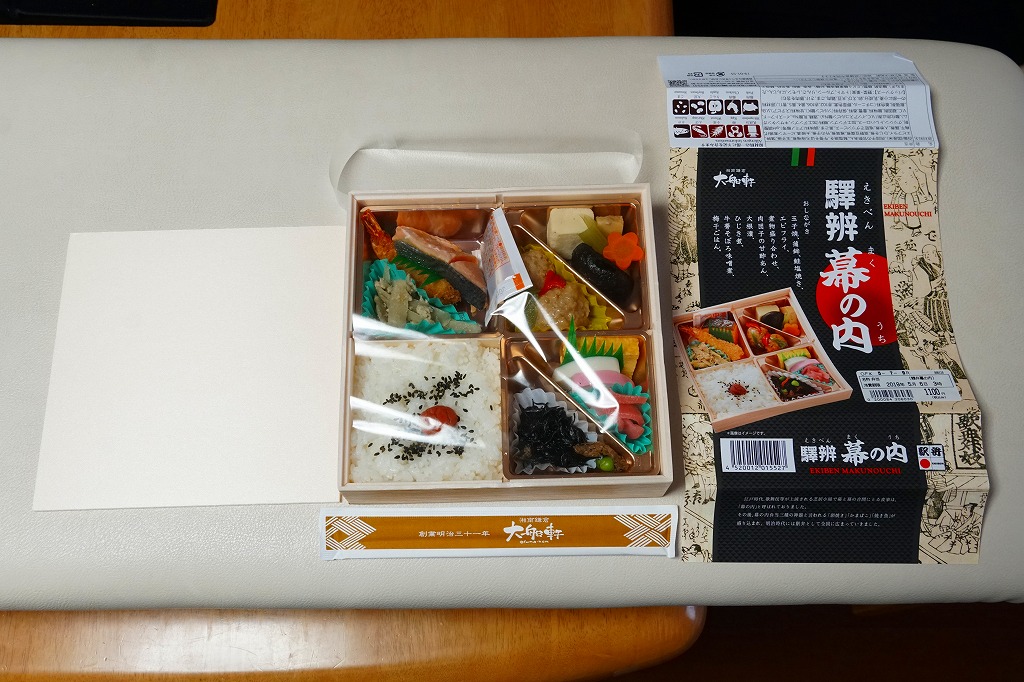 2016(平成28)年の夏までに、従前の「列車の幕の内弁当」を改称のうえ一部リニューアルか。幕の内駅弁として、日の丸御飯に焼鮭、かまぼこ、玉子焼、サトイモとタケノコとシイタケの煮物という基本と、マグロ唐揚、牛肉ごぼう煮、アサリ蒸し、シラスのごま油炒めとサクラエビという応用がある。幕の内駅弁としては、少量でコンパクトなつくりだと思う。2017年の5月頃に掛紙を中身の写真入りのものに変更、2018年にはこれを元に戻し、2019年1月に松花堂弁当タイプの「駅辨幕の内」(1,100円)へリニューアルした模様。