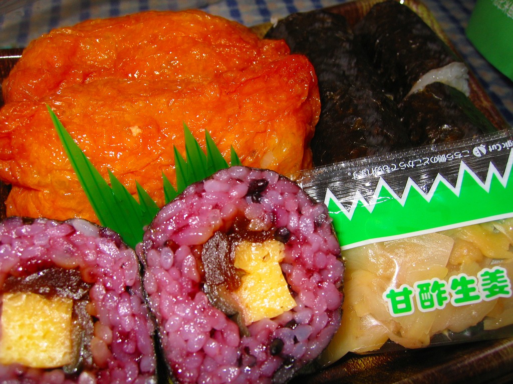 2003(平成15)年6月14日の発売。細身な容器の中に、太巻きにしては細く細巻きにしては太い、玉子焼とかんぴょうの巻き寿司が6個入る。酢飯には古代米の黒米に紫色に染めた米を、海苔代わりにキャベツ・ニンジン・カボチャ・シソの繊維で作った野菜シートを使用し、分量に対して値段は張るが個性的な味と外観を手に入れた。中高年の女性をターゲットに発売したというヘルシーな駅弁。2005年6月17日限りで終売となった。
