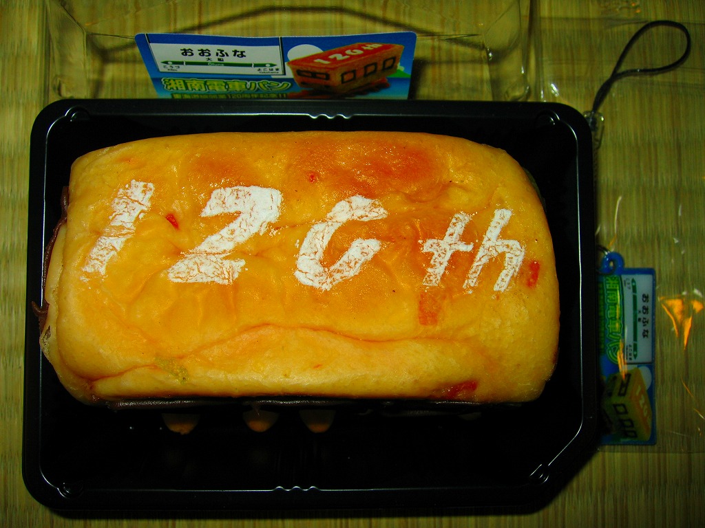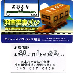 東海道本線横浜〜国府津間の開業120周年を記念して、2007(平成19)年7月11日から24日まで、大船駅構内のパン屋が一日120個を販売。好評のため8月20日から再発売を開始し、2009年頃まで販売された模様。通常は150円で、JR横浜支社が管内の駅弁屋4社を集めて2008年1月26日から27日まで横浜駅西口で実施したイベント「どんどん食べて!!記念・限定駅弁フェア」では、駅名標とパンの写真を載せたストラップを1本付けて300円で販売した。