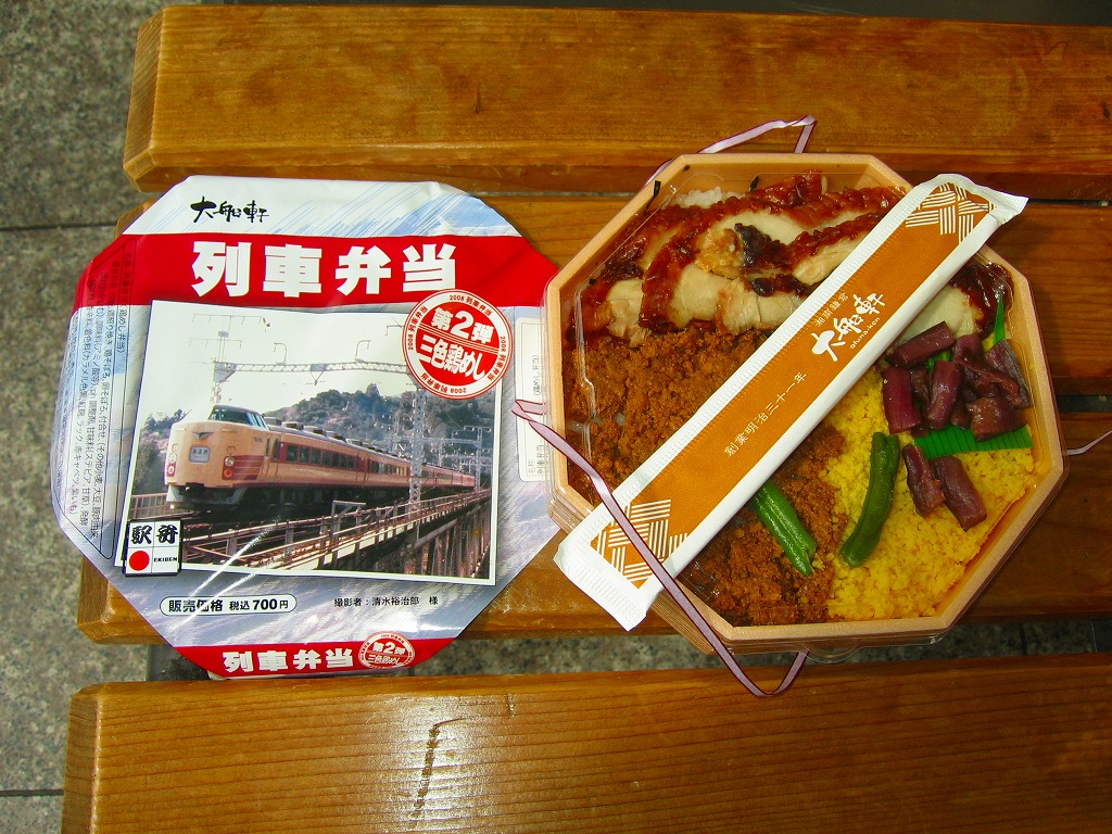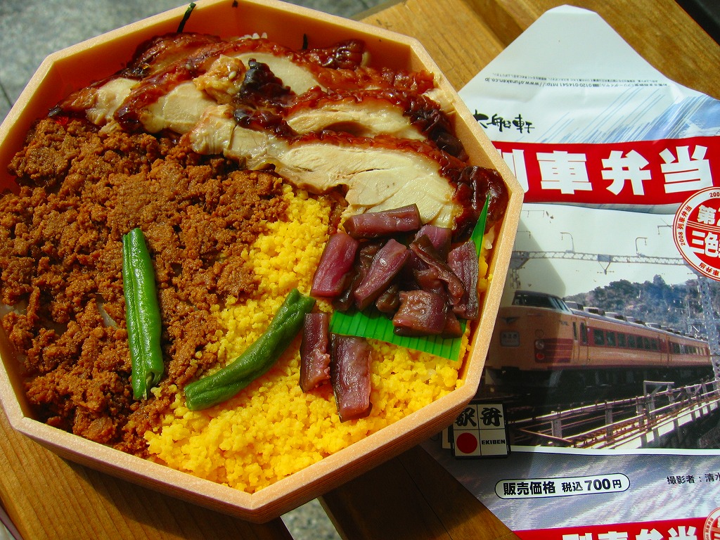 2008(平成20)年9月5日に、金土日曜限定駅弁として発売。8月の第1弾と同じ容器を、183系電車の特急「あまぎ」の写真を使った掛紙で包む。中身は白御飯の上を鶏照焼、鶏そぼろ、炒り卵で覆い、インゲンと柴漬けを添えるもの。残念ながら分量も風味も、スーパーの390円弁当レベル。しかし世の鉄道ブームに駅弁も乗るためには、この手の仕掛けが必要だろう。価格は20円の値上げ。この「第2弾」は9月限りで終売。