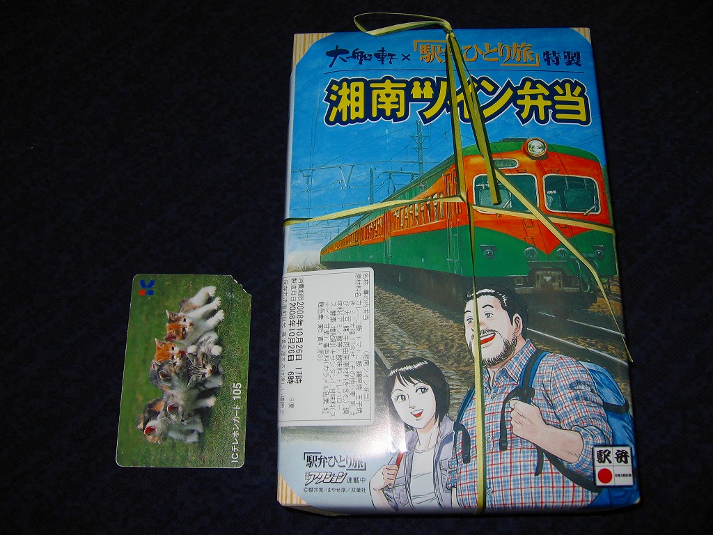 漫画アクションの連載作品「駅弁ひとり旅」とのタイアップで2008(平成20)年9月27日に発売。長方形の容器に木目柄のボール紙でふたをして、同作品の漫画家が描いた登場人物と元祖湘南電車のイラストを描いた掛紙をかけて、駅弁らしくひもで十字にしばる。