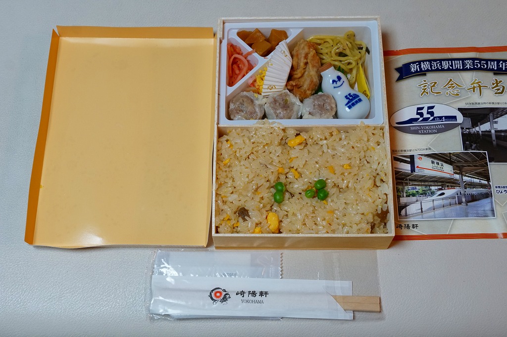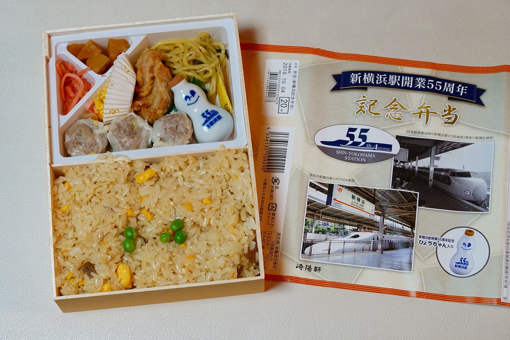 新横浜駅の開業55周年を記念し、2019(令和元)年9月28日から11月中旬まで、新横浜駅の各地で販売。掛紙には開業当時と現在の、新横浜駅の新幹線ホームの写真を掲載した。中身はいつもの「炒飯弁当」とほぼ同じで、炒飯、鶏唐揚、塩焼きそば、カニかまとクラゲの和え物、タケノコ煮、紅生姜、シウマイ3個。鶏唐揚を1個減らし、「55th新横浜駅」絵柄の磁器の醤油入れ「ひょうちゃん」を詰めた。