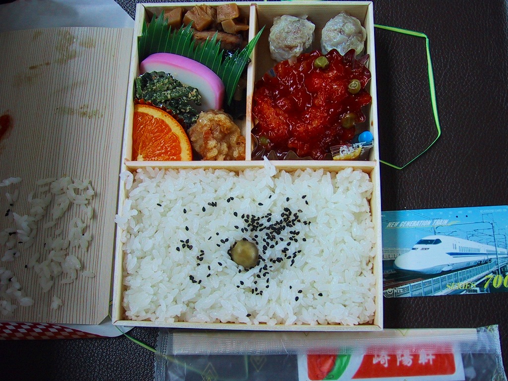 1987(昭和62)年11月にJR東海の「新幹線グルメ」キャンペーンで誕生した駅弁。長方形の厚みのある容器に、白飯とシウマイ・海老団子・鶏唐揚にミニ中華まんとあんずが入る。崎陽軒の駅弁の中では最も容器がしっかりしている。