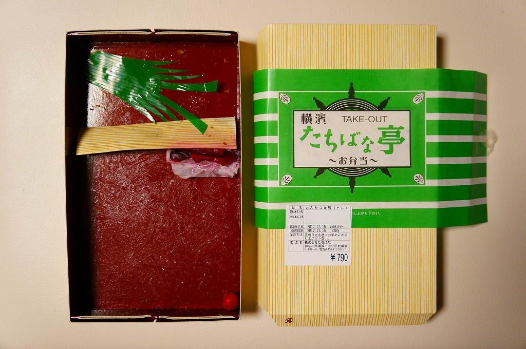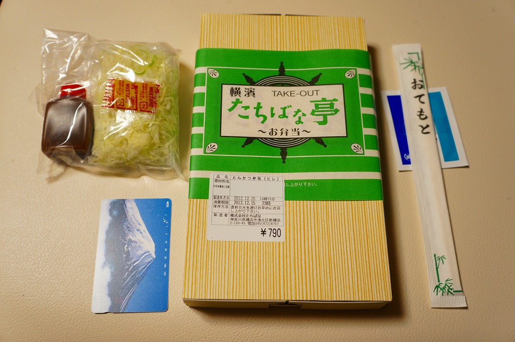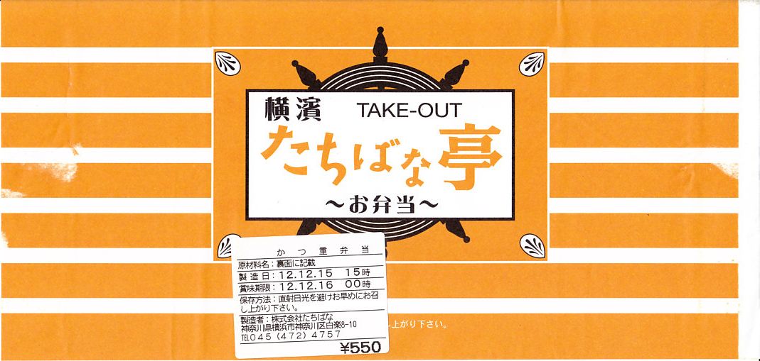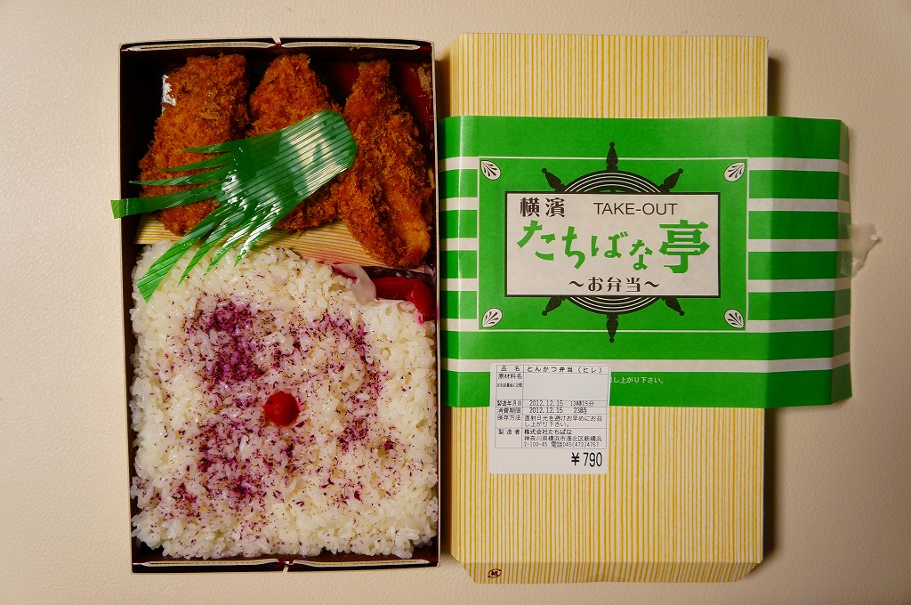 2012(平成24)年頃から新横浜駅構内、厳密には駅ビルあるいは交通広場の一角での台売りを始めた商品のひとつ。ふたに調製元店舗の名前を印刷した、浅い紙製の仕出し弁当向け容器に、ゆかりの日の丸御飯と3切れのヒレカツを詰めて、キャベツの千切りとソースとマスタードを別添する。とんかつチェーン店のテイクアウトに匹敵する品質のお弁当。2023年に新横浜駅の店舗が閉店したようで、今は駅では買えない。