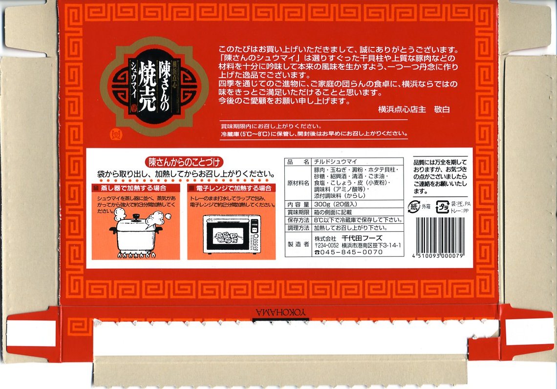 中身の肉焼売は、売られるままの冷蔵や常温で食べれば、ただ臭いだけ。パッケージの表面と側面と底面に加えてトレーの封でも、蒸し器やレンジでの加熱を推奨するから、旅の友ではなく土産物なのだろう。商品名の「陳さん」が誰なのか、パッケージやネットを見ても分からない。