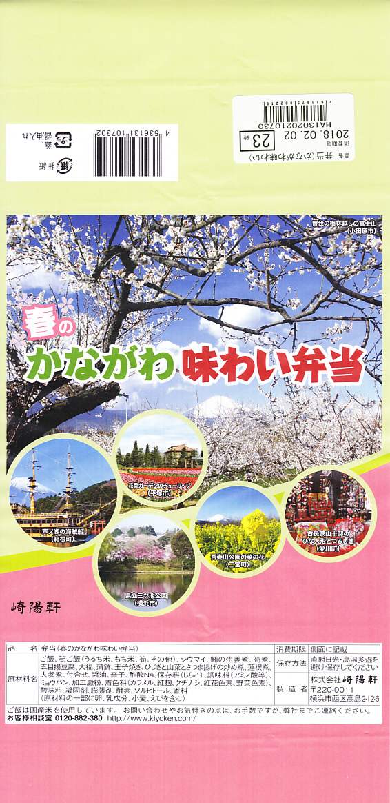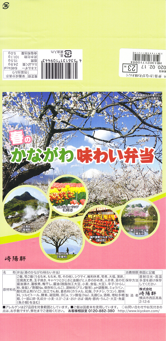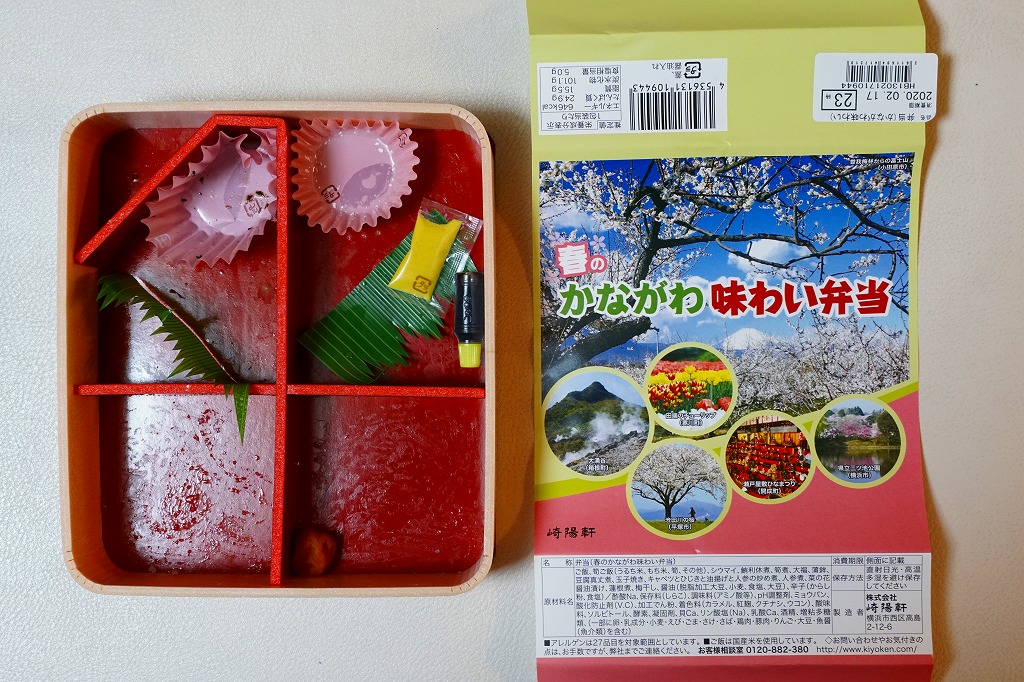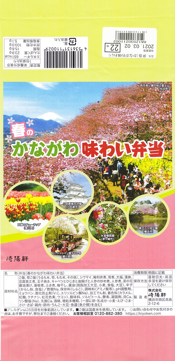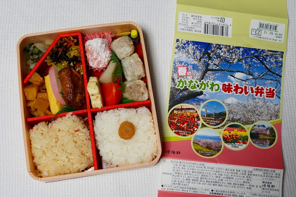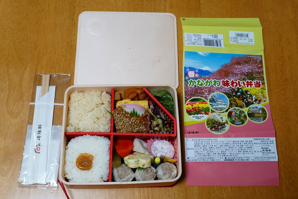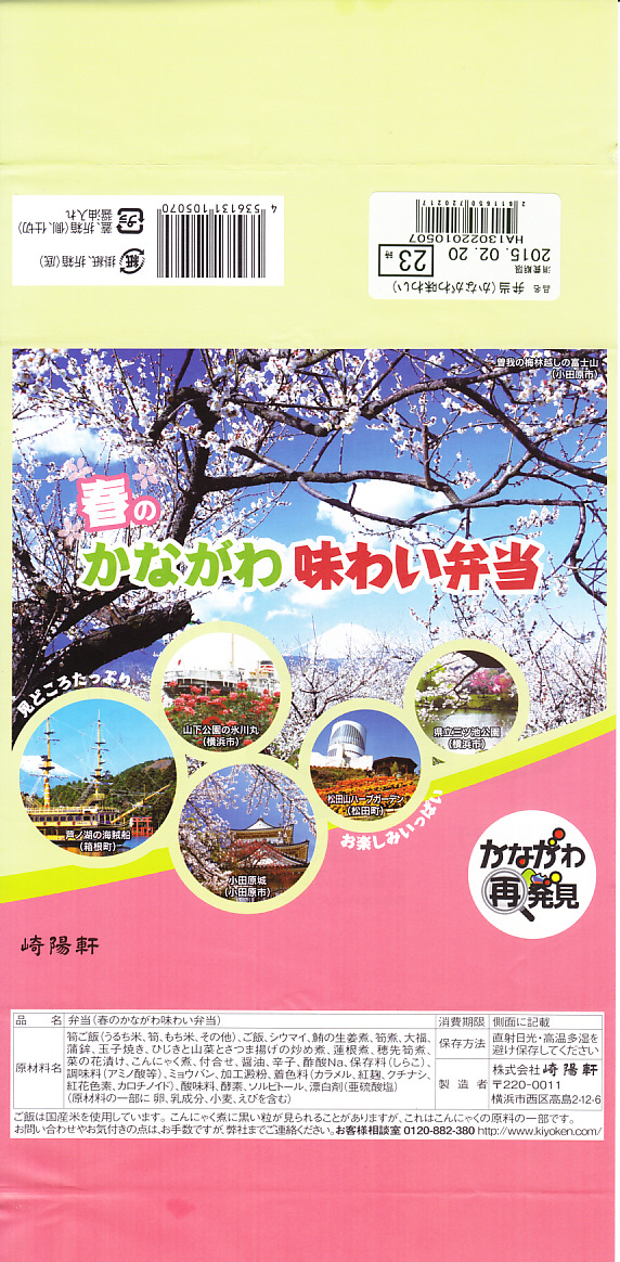 横浜駅弁「かながわ味わい弁当」で7シーズン目の「春」版で、2020(令和2)年2月1日から4月15日までの販売で、やはり神奈川県とのタイアップ企画。掛紙の写真に「大涌谷(箱根町)」「渋田川の桜(平塚市)」「瀬戸屋敷ひなまつり(開成町)」が加わった。
