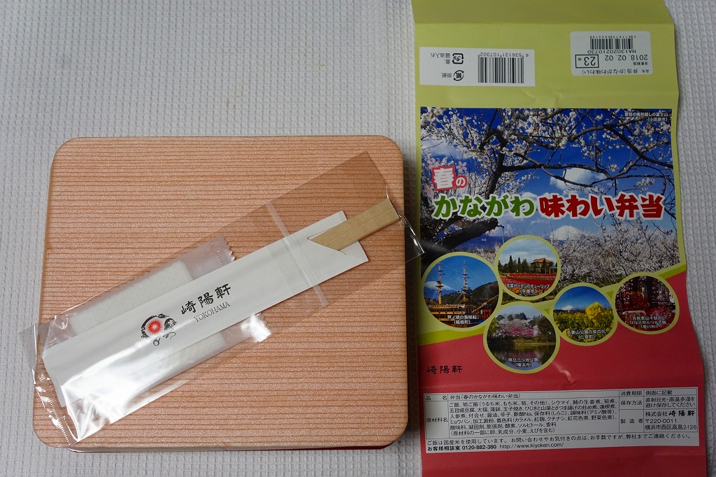 横浜駅弁「かながわ味わい弁当」で5シーズン目の「春」版で、2018(平成30)年2月1日から4月15日までの販売で、やはり神奈川県とのタイアップ企画。掛紙の写真に「花菜ガーデンのチューリップ(平塚市)」「県立三ツ池公園(横浜市)」「古民家山十邸のひな人形とつるし雛(愛川町)」が加わった。中身は前年から、煮物のタケノコを揚げ豆腐に、菜の花醤油漬を大根桜漬に変えただけ。もう何も変える必要がないのだろう。
