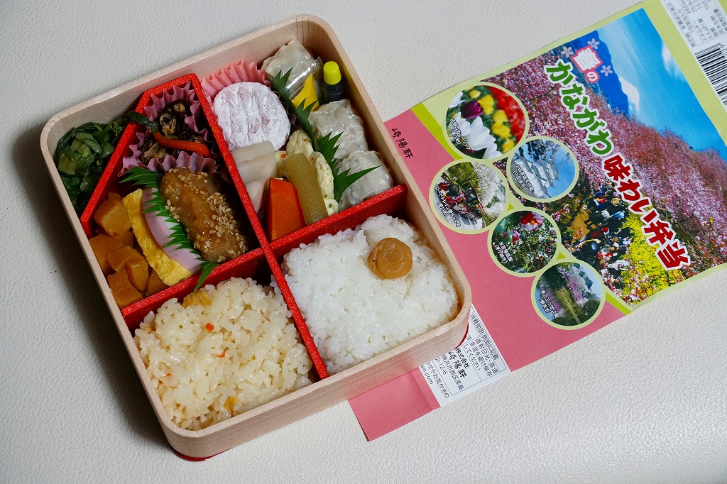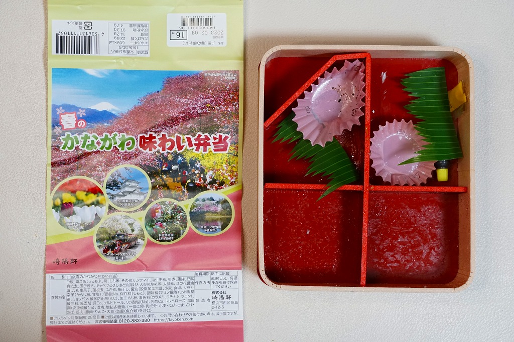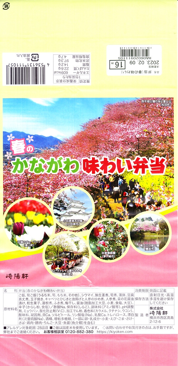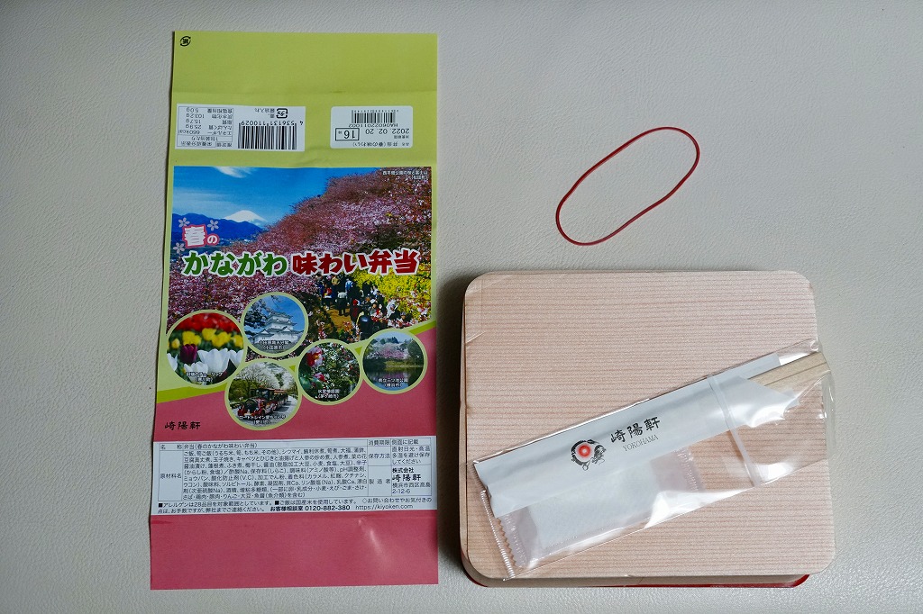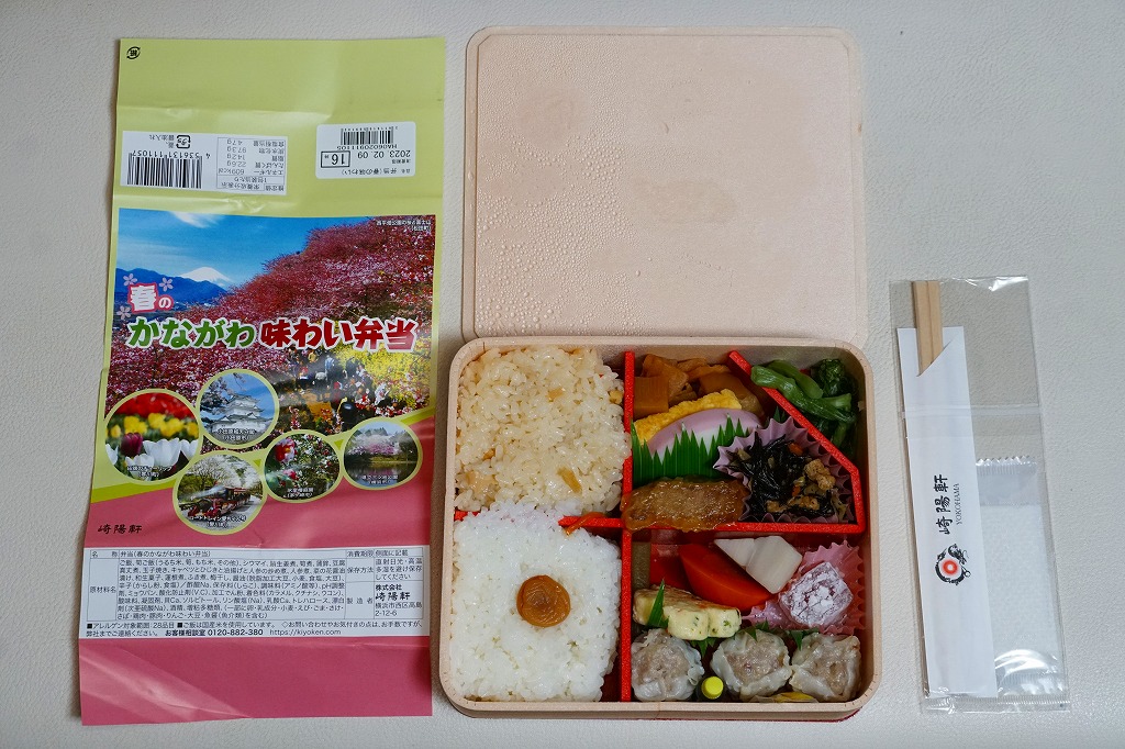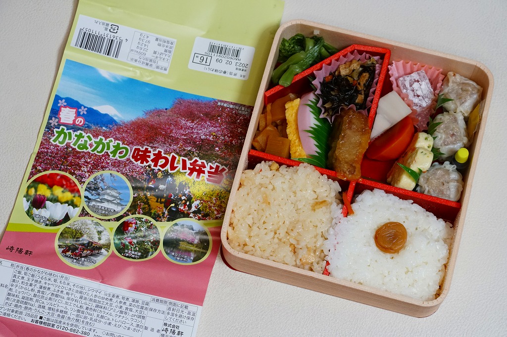 横浜駅弁「かながわ味わい弁当」で10シーズン目の「春」版で、2023(令和5)年2月1日から4月15日までの販売で、やはり神奈川県とのタイアップ企画。掛紙の内容は前年と同じで、写真もまったく同じ。価格は50円アップの1,030円。